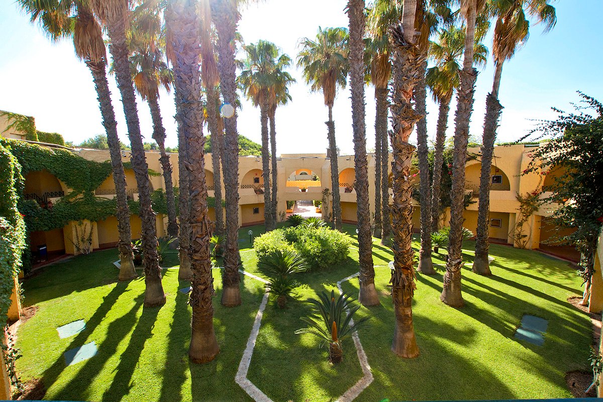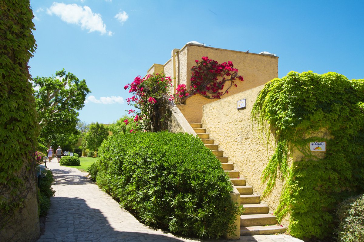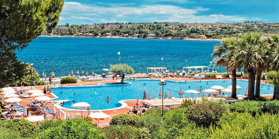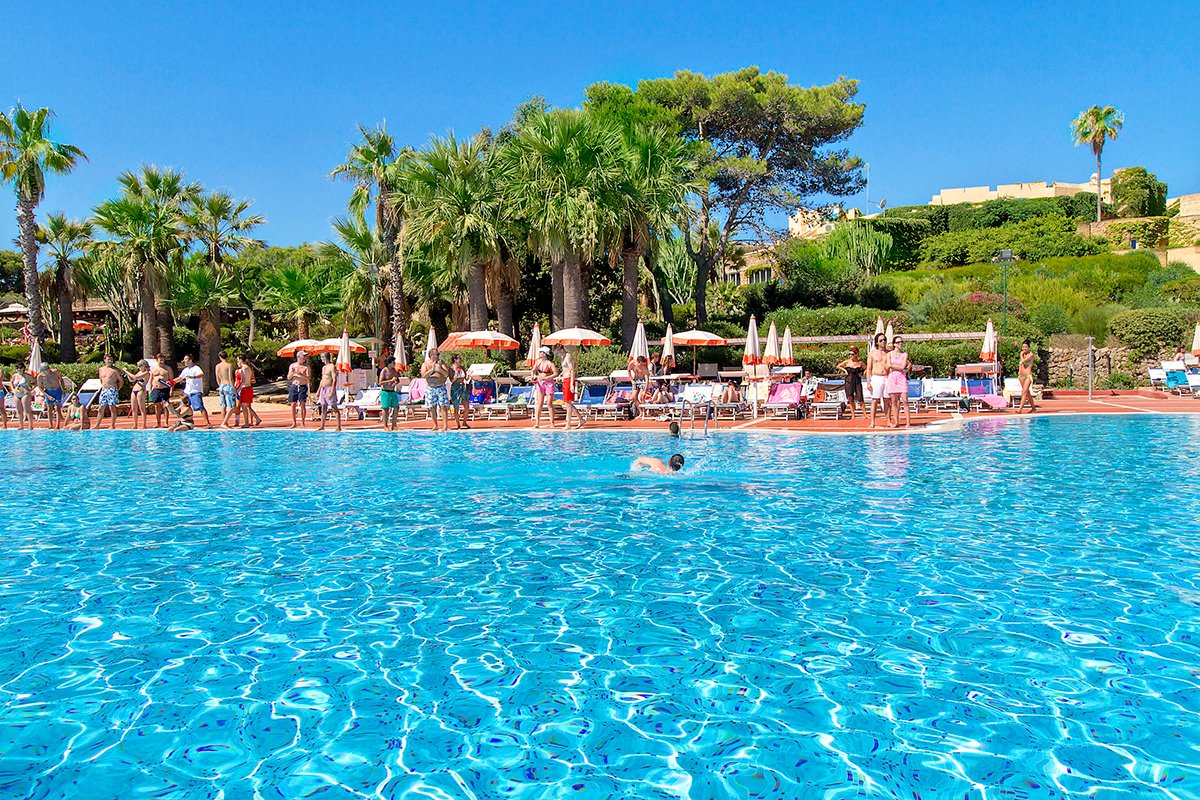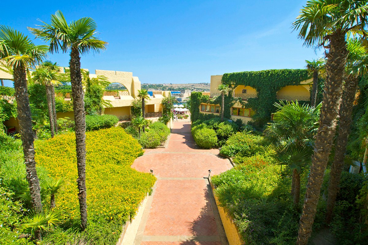 Ciekawie zaprojektowany, malowniczo wkomponowany w skaliste klify Morza Jońskiego i otoczony ogromnym ogrodem z bujną, tropikalną i śródziemnomorską roślinnością. Wszechobecne palmy, makia śródziemnomorska, fontanny, klomby z kwiatami, liczne mostki i dziedzińce tworzą idealne warunki do wypoczynku dla osób szukających spokoju i kontaktu z naturą. Pobyt w hotelu uatrakcyjniają włoskie i francuskie animacje, bogate zaplecze sportowe i smaczna kuchnia. Do dyspozycji Gości jest duży basen z widokiem na morze, brodzik dla dzieci oraz platforma z tarasem słonecznym z bezpłatnymi leżakami i parasolami.