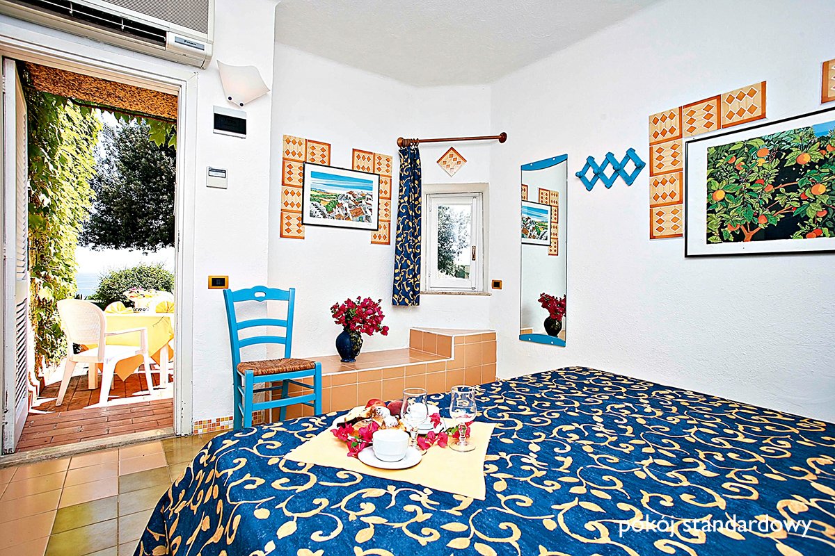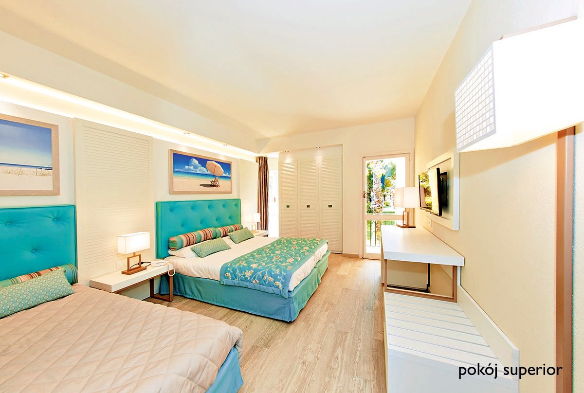 standardowy: 2-os. (możliwość 1 dostawki dla os. dorosłej lub 2 dostawek dla dzieci), 22-28 m², indywidualnie sterowana klimatyzacja (pilot dostępny w recepcji za kaucją: 20 EUR/pokój), łazienka (prysznic, wc; suszarka), telewizor, sejf, lodówka; bezpłatne łóżeczko dla dziecka do 2 lat na zamówienie przed przyjazdem.