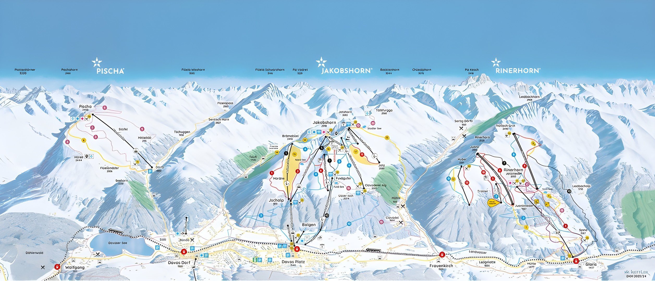 Davos Klosters – ok. 250 km tras (Parsenn, Jakobshorn, Rinerhorn, Madrisa, Pischa):