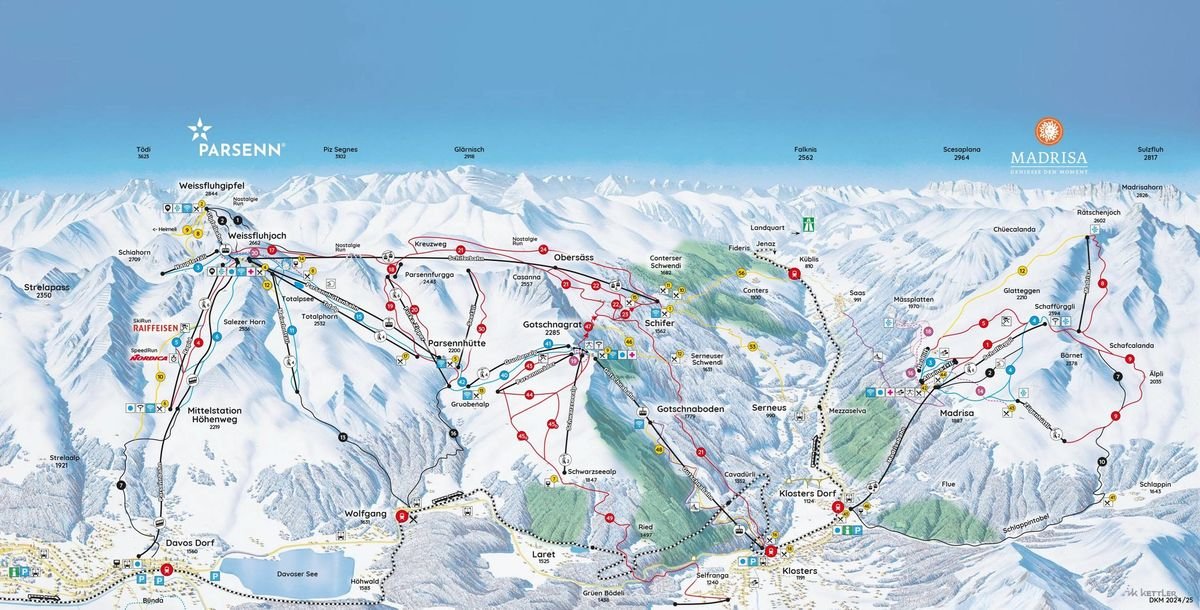 Davos Klosters – ok. 250 km tras (Parsenn, Jakobshorn, Rinerhorn, Madrisa, Pischa):