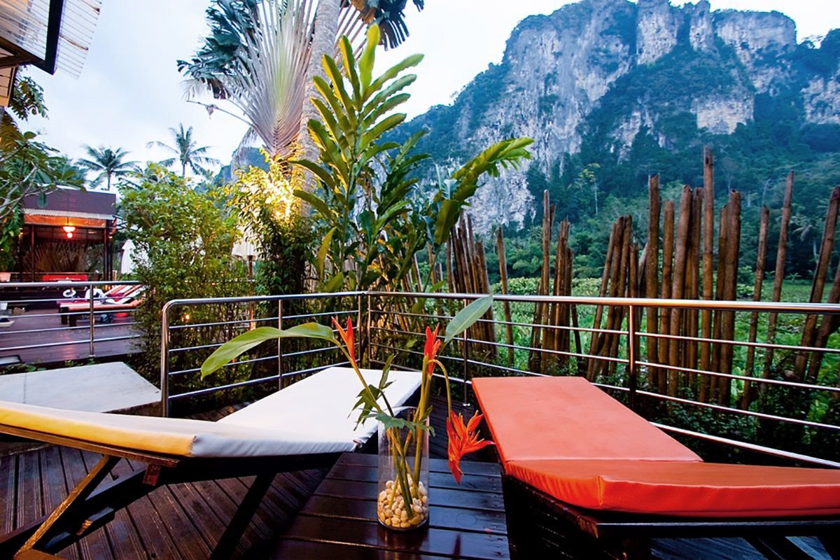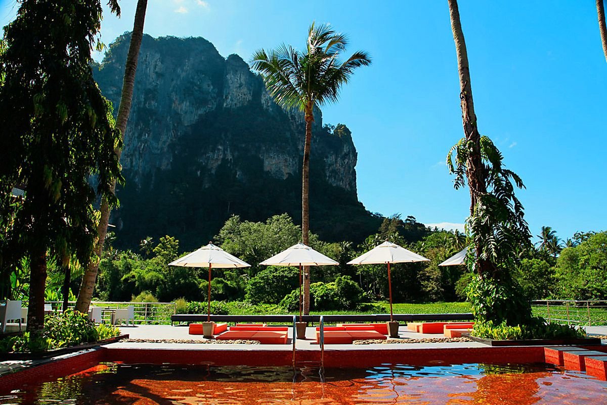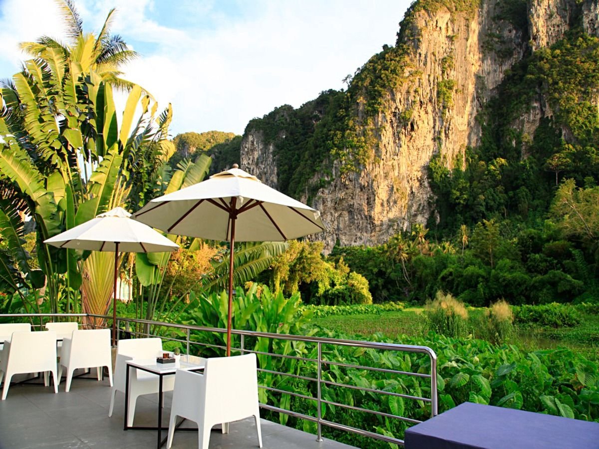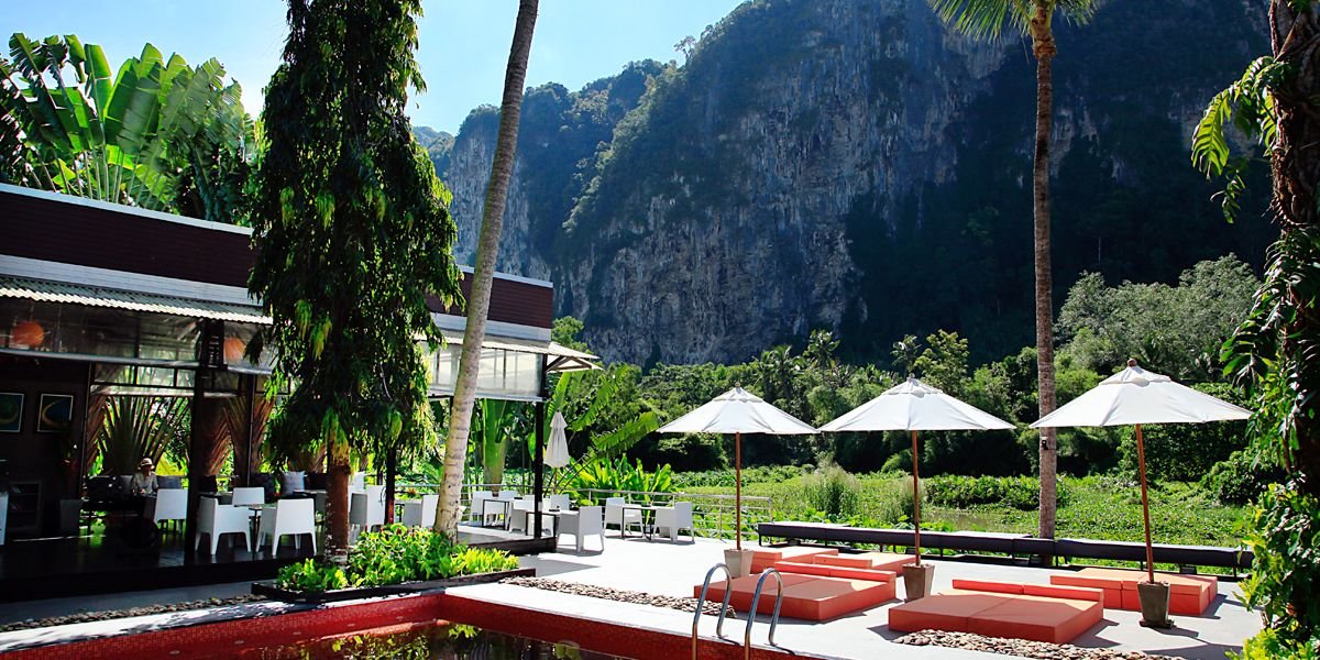 w dzielnicy hotelowej, ok. 400 m od centrum AO NANG z barami i sklepami, przy drodze lokalnej; ok. 25 km od lotniska w Krabi, ok. 145 km od lotniska na Phuket; przystanek autobusowy ok. 400 m od hotelu (Krabi, ok. 100 THB).