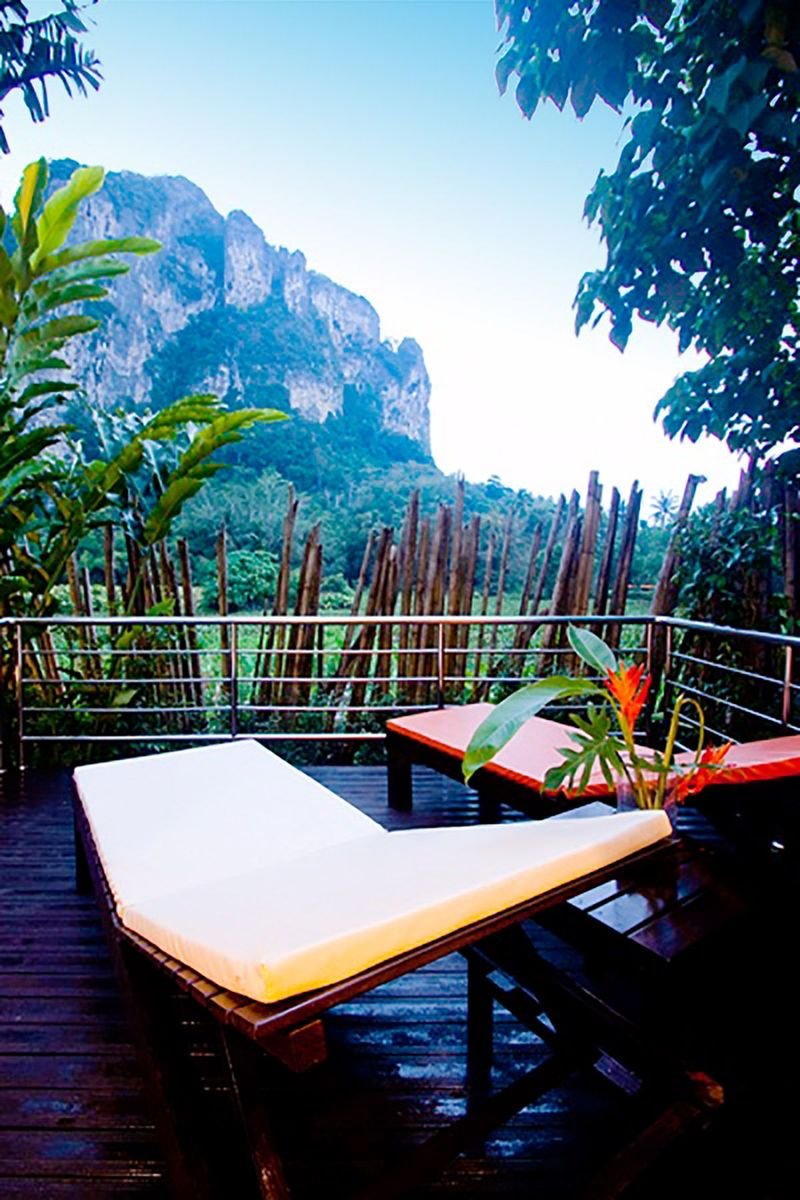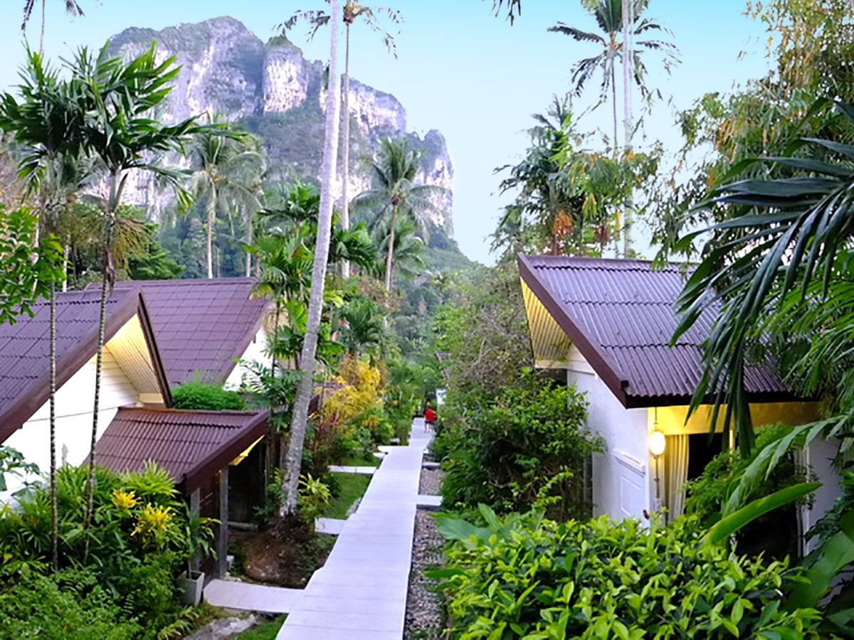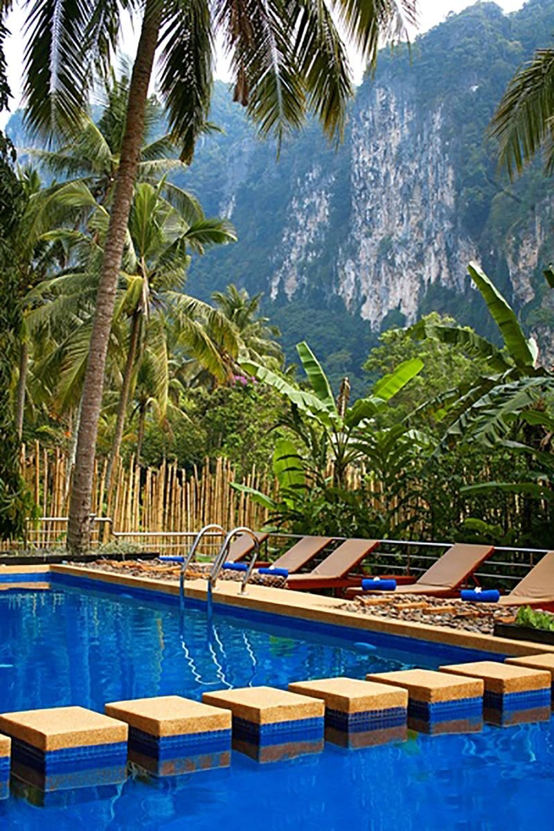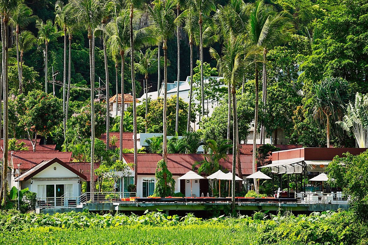 w dzielnicy hotelowej, ok. 400 m od centrum AO NANG z barami i sklepami, przy drodze lokalnej; ok. 25 km od lotniska w Krabi, ok. 145 km od lotniska na Phuket; przystanek autobusowy ok. 400 m od hotelu (Krabi, ok. 100 THB).