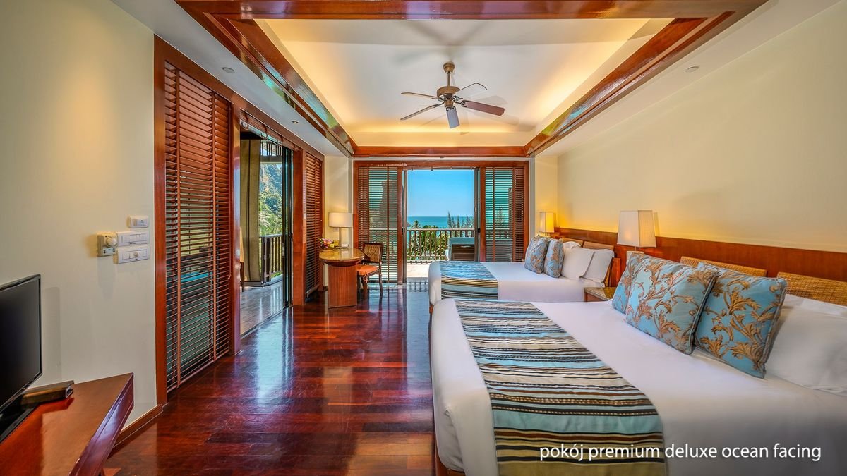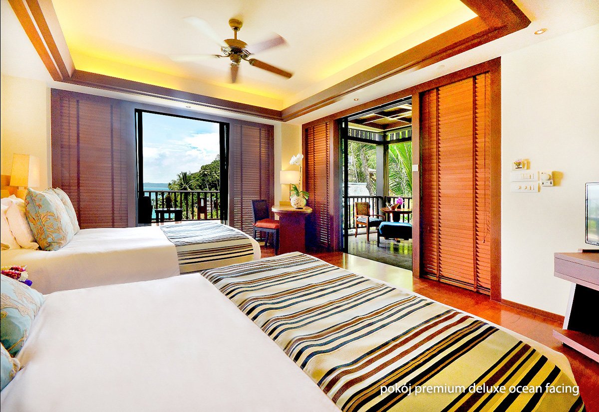 deluxe garden view: 2-os. (możliwość 1 lub 2 dostawek dla dzieci – w przypadku zakwaterowania 2 dzieci z 2-os. dorosłymi, dzieci śpią razem na łóżku małżeńskim), ok. 72 m², indywidualnie sterowana klimatyzacja, łazienka (wanna, prysznic; suszarka, kapcie, szlafrok, kosmetyki), osobne wc, internet bezprzewodowy, telewizja satelitarna, telefon, sejf, zestaw do kawy/herbaty; za opłatą: minibar; bezpłatne łóżeczko dla dziecka do 2 lat na zamówienie przed przyjazdem; balkon (stolik i krzesełka); deluxe ocean facing: 2-os. (możliwość 1, 2 lub 3 dostawek dla dzieci – w przypadku zakwaterowania 2 lub 3 dzieci z 2-os. dorosłymi, dzieci śpią razem na łóżku małżeńskim), ok. 72 m², wyposażenie jak w pokoju deluxe garden view; balkon lub taras (stolik i krzesełka), widok na morze; pokój deluxe ocean facing za dopłatą; premium deluxe ocean facing: 2-os. (możliwość 1, 2 lub 3 dostawek dla dzieci – w przypadku zakwaterowania 2 lub 3 dzieci z 2-os. dorosłymi, dzieci śpią razem na łóżku małżeńskim), ok. 77 m², wyposażenie jak w pokoju deluxe garden view; taras (stolik i krzesełka), widok na morze; pokój premium deluxe ocean facing za dopłatą.