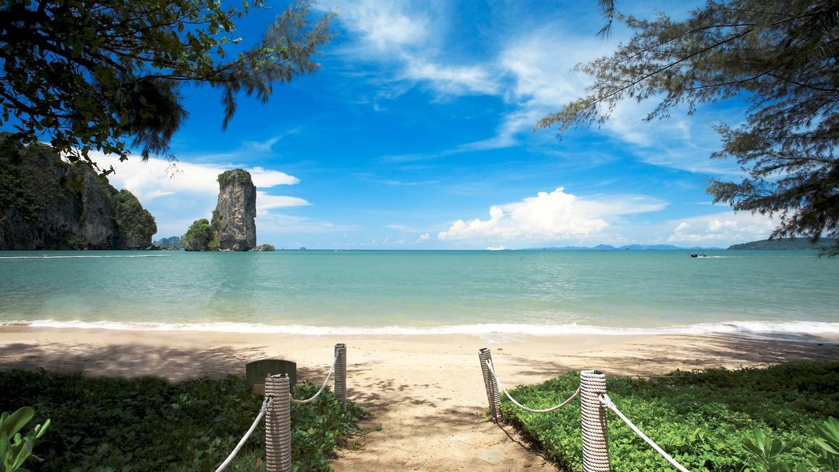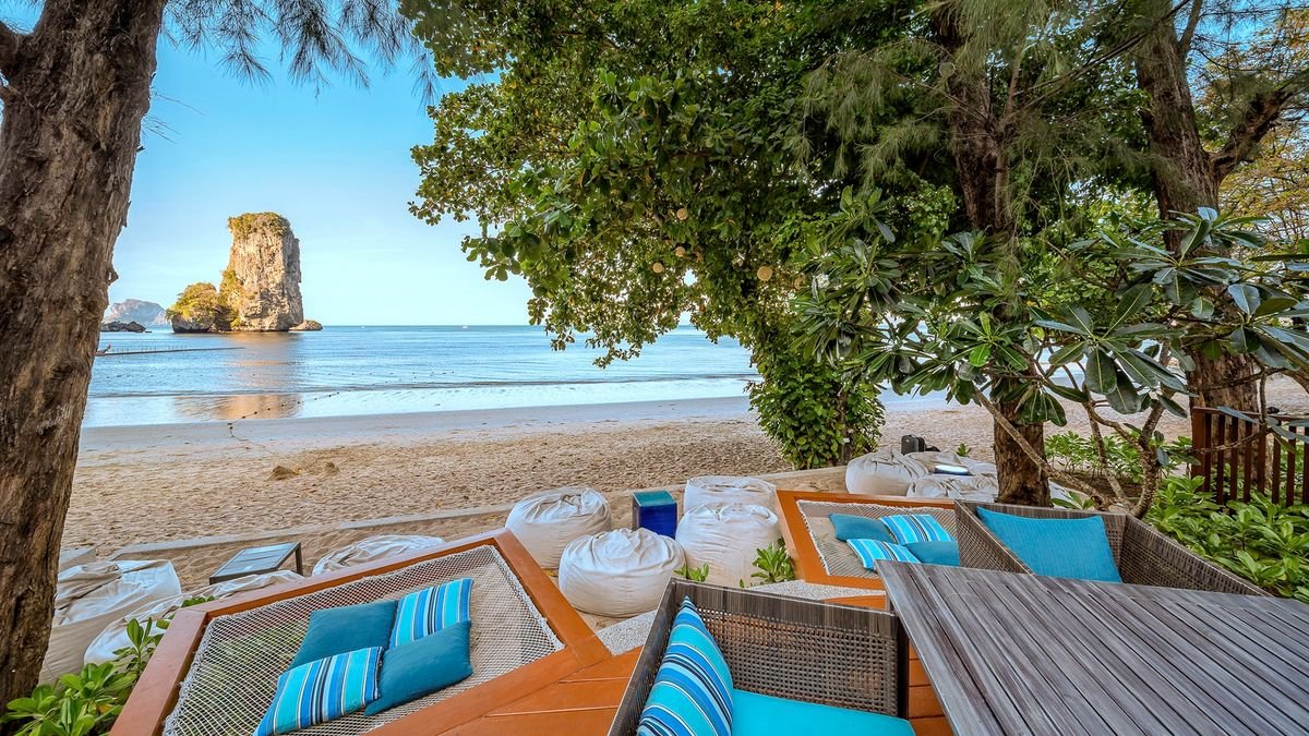 w zatoce, ok. 2 km od centrum miejscowości PAI LONG BAY, ok. 2 km od miejscowości AO NANG ze sklepami i barami; ok. 35 km od lotniska w Krabi, ok. 145 km od lotniska na Phuket, transfer autokarem i łodzią (czas transferu łodzią ok. 30 min.); regularne połączenie łódkami między hotelem a Ao Nang.