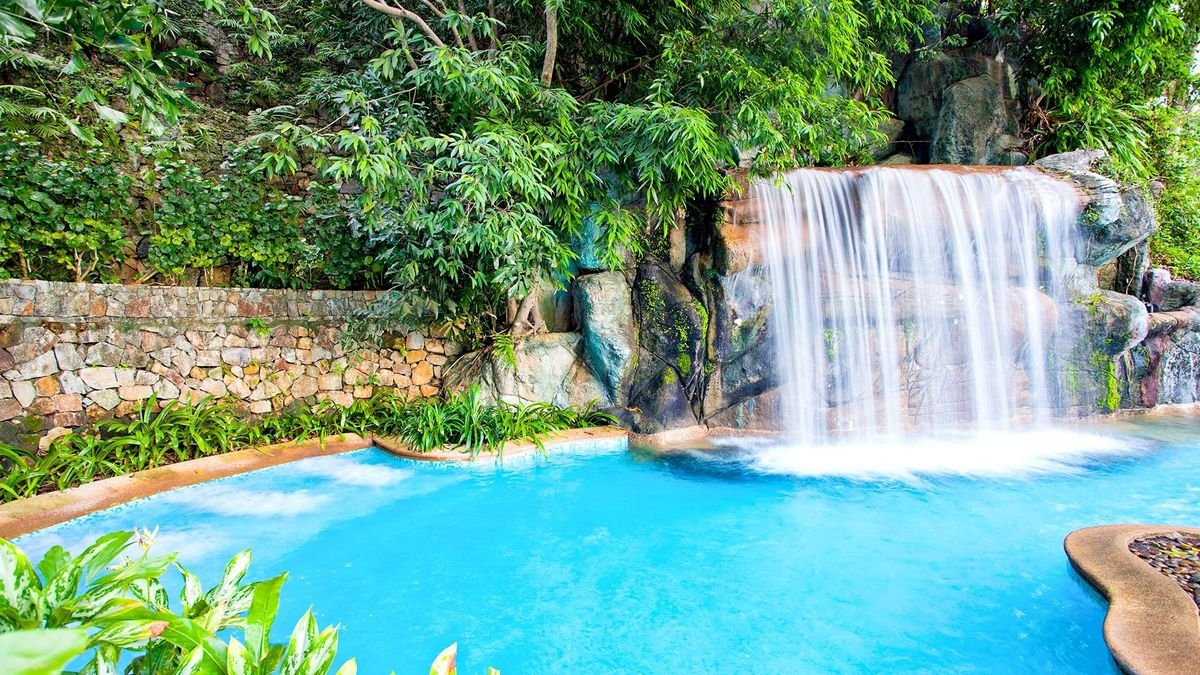 •2 baseny (czynne: 8.00-19.00), słodka woda, wydzielona część dla dzieci, zjeżdżalnie, wodospady