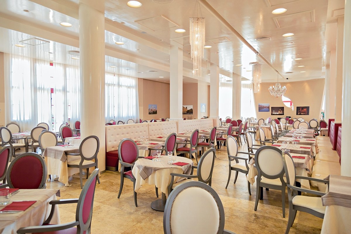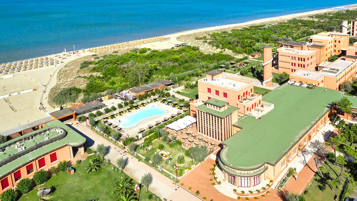 czterogwiazdkowy, wybudowany na bazie zabytkowych budynków z lat 30-tych XX w., nowoczesny, 73 pokoje, kilka budynków, do 3 pięter, winda w części budynków, przestronne lobby, całodobowa recepcja, restauracja główna w centrum kurortu – dania w formie bufetu, kuchnia włoska i międzynarodowa, dostępne menu i foteliki dla dzieci, dania wegetariańskie i bezglutenowe (na zapytanie), restauracja przy plaży (płatna) – dania w formie bufetu, kuchnia włoska, 2 bary, w tym przy plaży; taras z widokiem na morze, ogród; internet bezprzewodowy w lobby; za opłatą: pralnia; akceptowane karty kredytowe: Visa, MasterCard.
