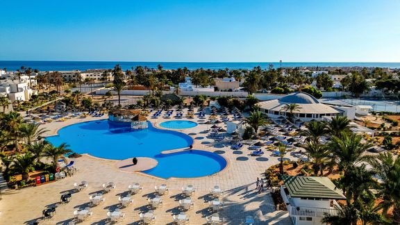 Położony w ogrodzie z palmami i oliwkami ma piękne baseny i aż 7 kortów tenisowych. Bogata formuła klubowa gwarantuje mnóstwo rozrywki i atrakcji, zapewniając niepowtarzalny klimat rodzinnych wakacji. Hotel może pochwalić się wnętrzami z detalami w stylu berberyjskim i djerbańskim w pogodnej wakacyjnej kolorystyce. Idealna równowaga pomiędzy jakością i ceną!