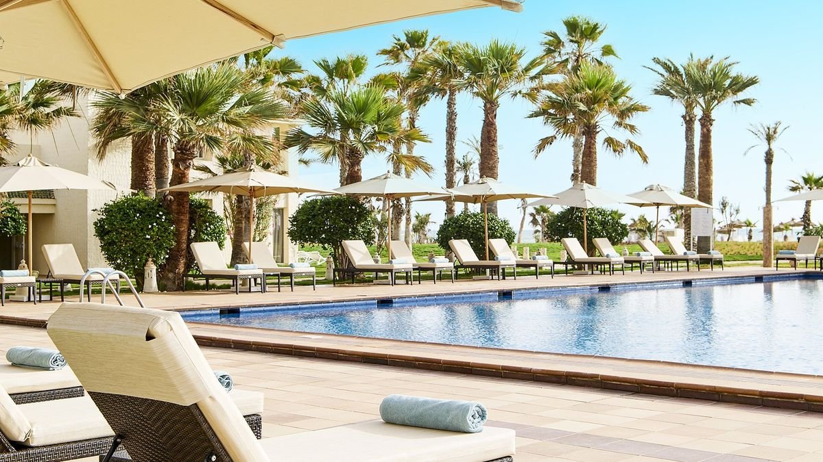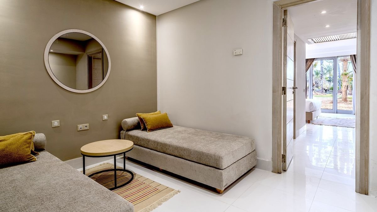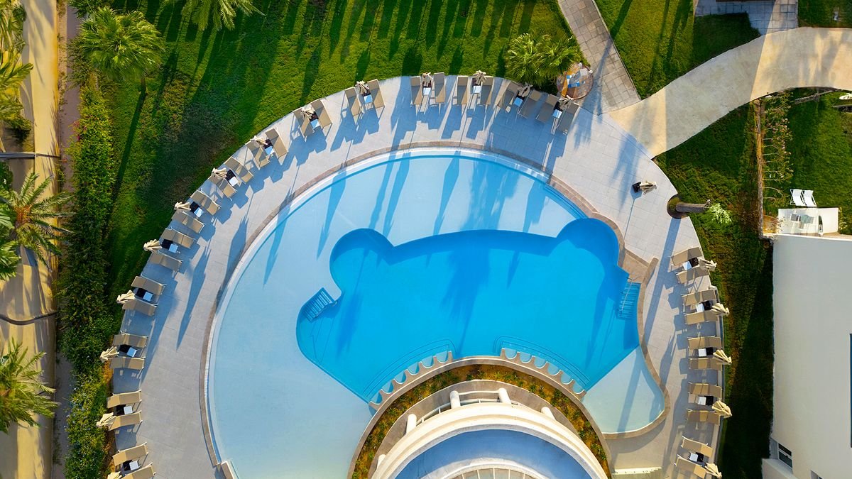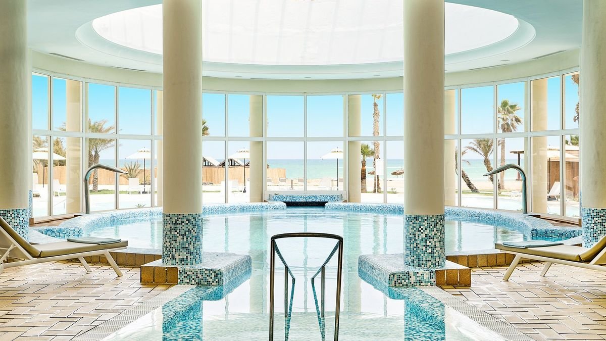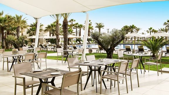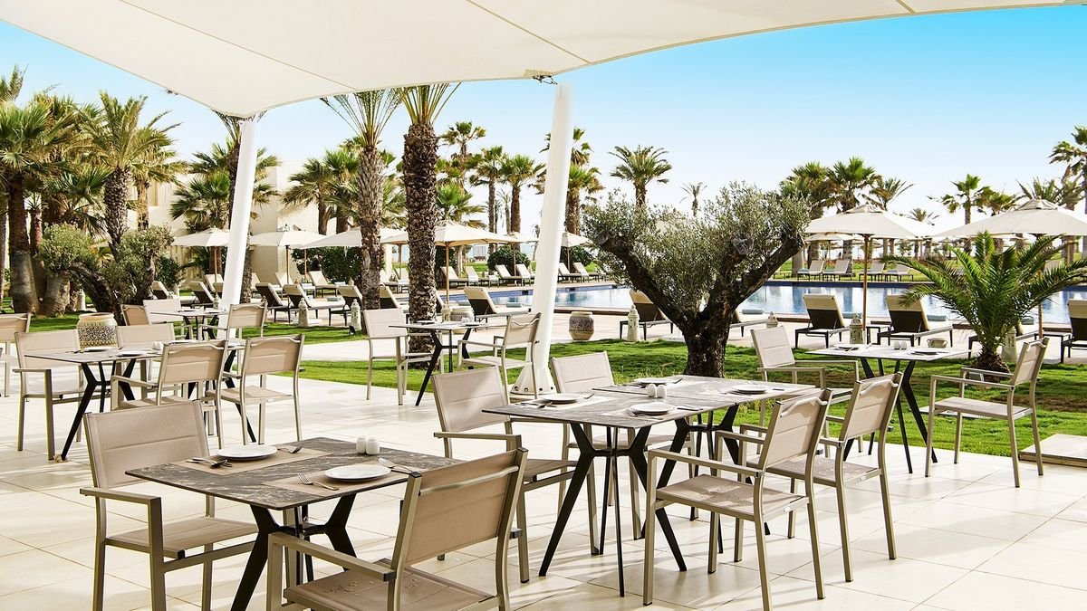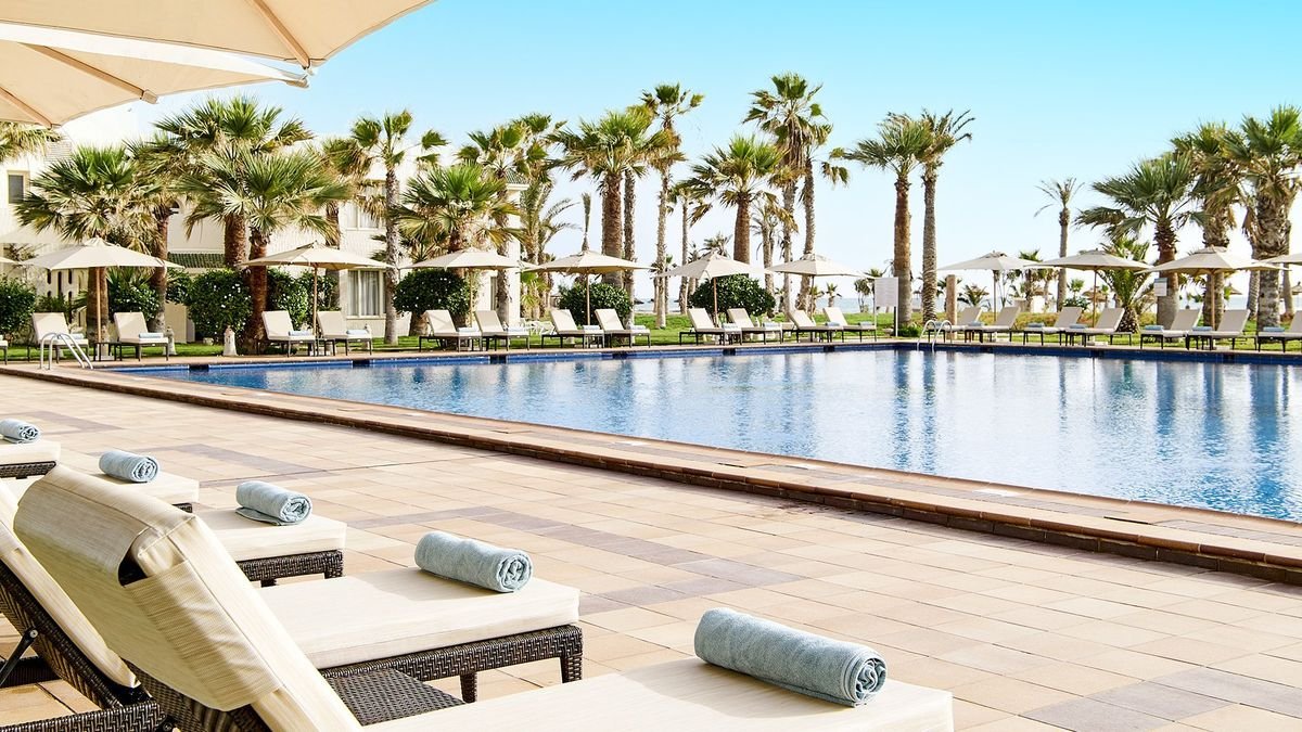 Niech żyją wakacje! Tutaj przykuwa wzrok intensywna zieleń chwiejących się na wietrze palm, pięknie zaaranżowane baseny gwarantują orzeźwienie w upalne dni, a jasny piasek spotyka się z lazurem Morza Śródziemnego – witaj na Djerbie, wyspie, która w 2023 r. została wpisana na listę UNESCO i zbiera coraz więcej zwolenników! Odpocznij w pokojach z widokiem na ogród, który zachwyca nie tylko roślinnością, ale i wielkością, opalaj się na leżaku, weź udział w animacjach i spróbuj nauki języka arabskiego – wszystko to w cudownych okolicznościach przyrody i wyszukanych hotelowych wnętrzach. Prezentowany materiał graficzny przedstawia wizualizację obiektu.