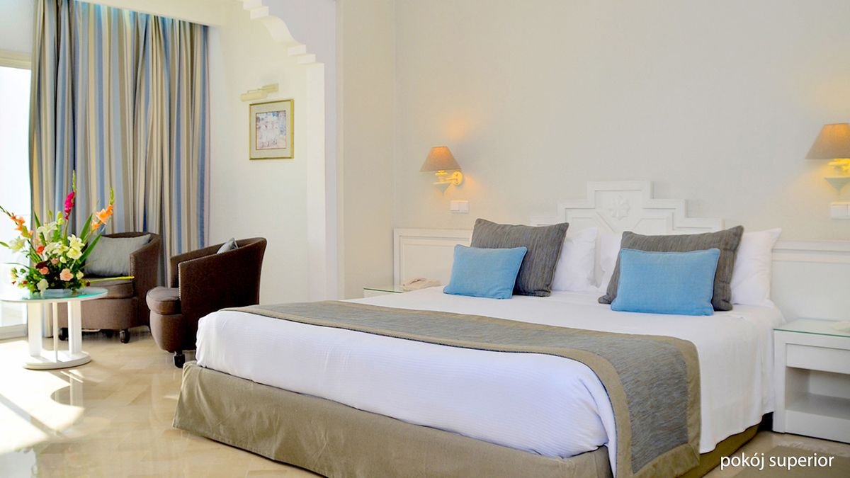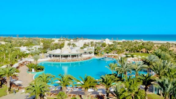 Położony na rozległym terenie, otoczony zielonym ogrodem, już od wejścia robi imponujące wrażenie. Piękne lobby, bogato zdobione, z orientalnymi detalami i turkusowymi kolumnami, przywodzi na myśl „Baśnie tysiąca i jednej nocy”. Zaprojektowany z rozmachem, w kształcie półksiężyca, położony blisko szerokiej piaszczystej plaży, to idealny pomysł na leniwe słoneczne wakacje. Olbrzymi basen to świetne miejsce do odpoczynku i zabawy zarówno dla dorosłych, jak i dzieciaków. Bary i bogata formuła all inclusive przypadną do gustu nawet wymagającym Klientom.