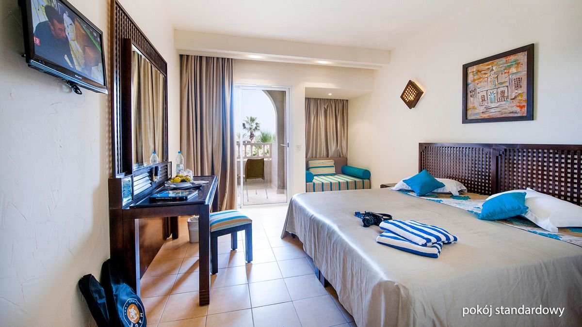 Położony nad morzem z bezpośrednim dostępem do plaży hotelowej z bezpłatnym serwisem plażowym, jest doskonałą propozycją na urlop w promieniach tunezyjskiego słońca. Na miejscu szerokie zaplecze sportowo-rekreacyjne – do dyspozycji Gości m.in. 2 baseny, w tym jeden dla dzieci z 3 zjeżdżalniami, 5 kortów tenisowych, basen kryty oraz boiska do piłki nożnej, koszykówki i siatkówki plażowej. Dla najmłodszych przygotowano gry i zabawy w miniklubie, a także plac i pokój zabaw. W ciągu dnia możesz odpocząć na leżaku przy basenie, zadbać o formę podczas aerobiku, a wieczorem zaszaleć przy muzyce na żywo lub spróbować swoich sił w karaoke. Po dniu pełnym wakacyjnych atrakcji wypocznij w przestronnych i komfortowych pokojach. Dopełnieniem udanego pobytu jest bogata formuła all inclusive.