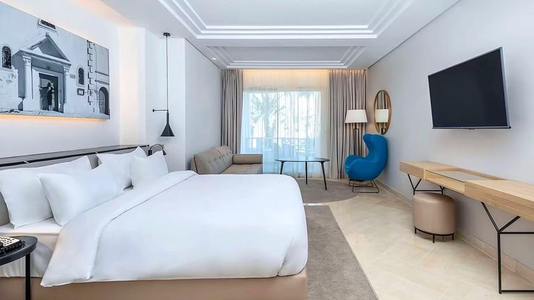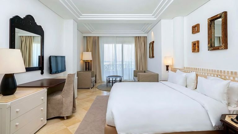 Jeden z najbardziej luksusowych hoteli na Djerbie, porównywany do pałacu „Tysiąca i Jednej Nocy”, idealnie łączy nowoczesny komfort z orientalnymi detalami. Na miejscu czekają przestronne i eleganckie pokoje oraz fantastyczne centrum thalassoterapii z bogatą ofertą zabiegów, niezwykle pozytywnych dla zdrowia duszy i ciała. Rewelacyjne baseny, plaża tuż przy hotelu, wiele możliwości aktywnego spędzania czasu, a dla dzieciaków świetnie wyposażony miniklub – to kolejne atuty tego miejsca. Hotel polecany jest dla najbardziej wymagających osób, szukających spokojnego i wygodnego wypoczynku.