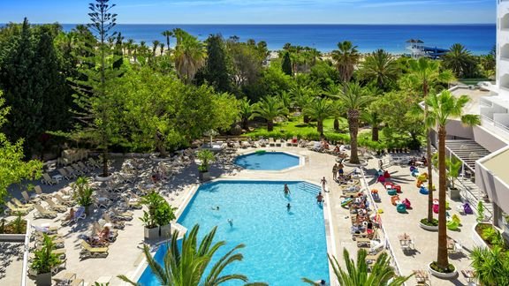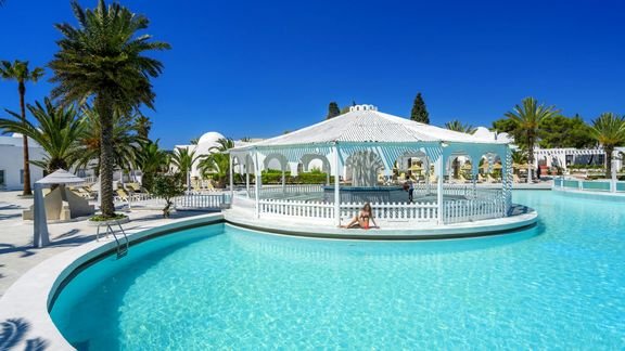 Kompleks hotelowy, składający się z budynku głównego i bungalowów – Tunisian Village – usytuowanych w rozległym tropikalnym ogrodzie. Tuż obok deptak z kafejkami, restauracjami i barami oraz piękna piaszczysta plaża. Skromny, ale zadbany i wygodny, polecany jest dla osób nastawionych na aktywny wypoczynek poza hotelem. Blisko stąd do aquaparku Flipper, który z pewnością urozmaici pobyt rodzinom z dziećmi.