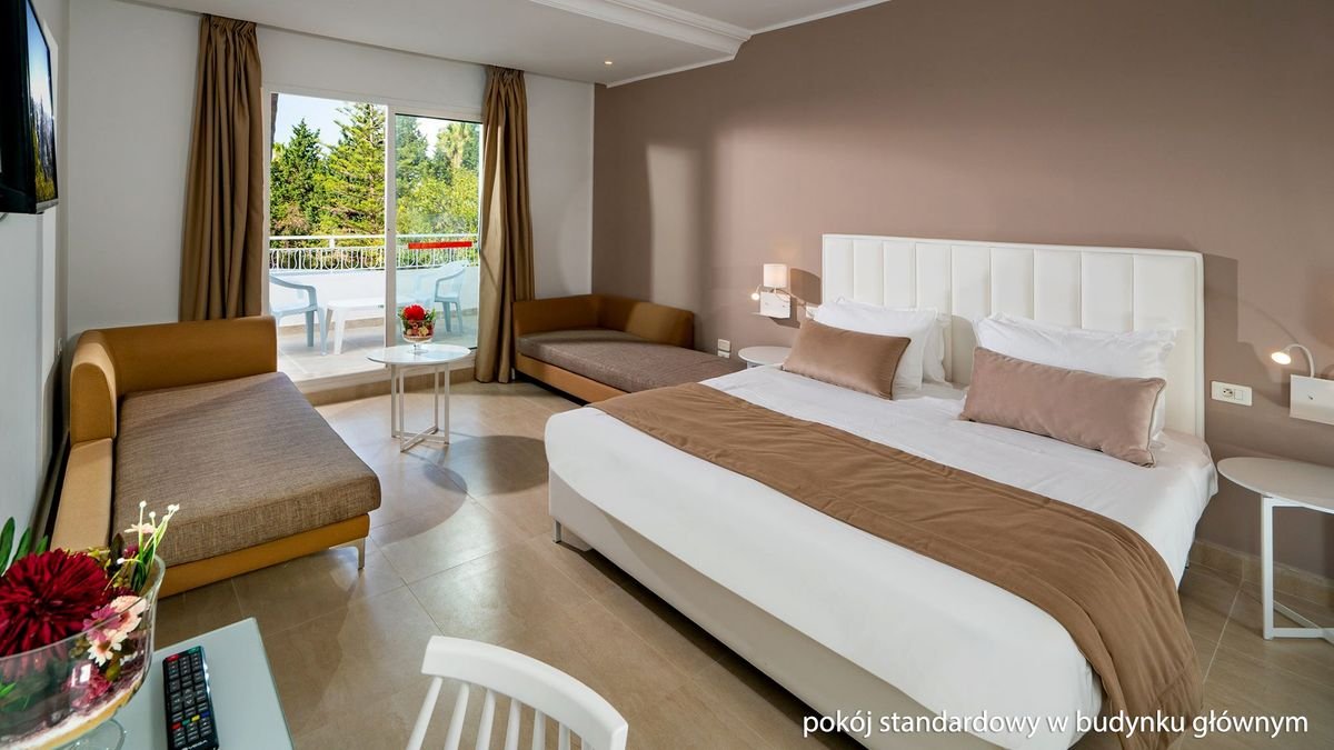 2 baseny, słodka woda, 2 baseny dla dzieci, przy basenach bezpłatne parasole i leżaki; nielimitowany wstęp do aquaparku Flipper; 2 korty tenisowe z wypożyczalnią sprzętu (za kaucją), tenis stołowy; plac zabaw dla dzieci, miniklub (4-12 lat), animacje sportowe i programy rozrywkowe dla dorosłych i dzieci: aerobik, aqua aerobik, piłka wodna, siatkówka plażowa, tenis stołowy; za opłatą: centrum wellness: masaże, sauna, hammam, salon urody, sporty motorowe na plaży (zależnie od warunków atmosferycznych).