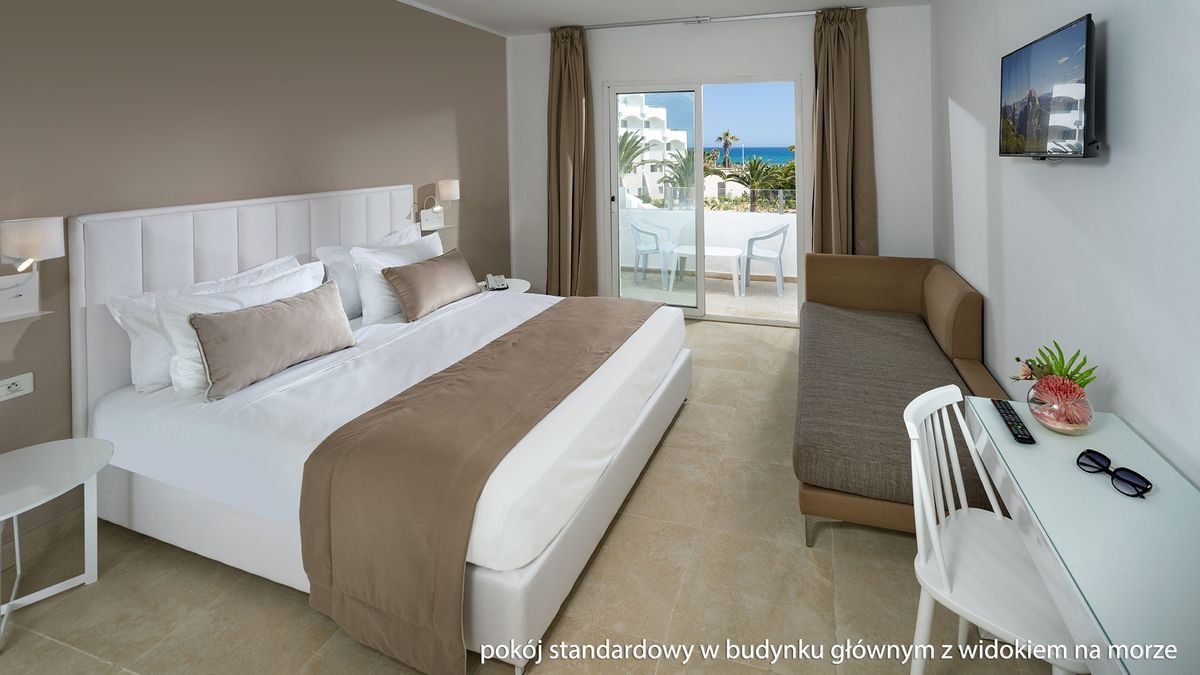 piaszczysta, szeroka, łagodne zejście do morza, ok. 100 m od hotelu, przejście przez uliczkę, bezpłatne parasole i leżaki, materace i ręczniki płatne.