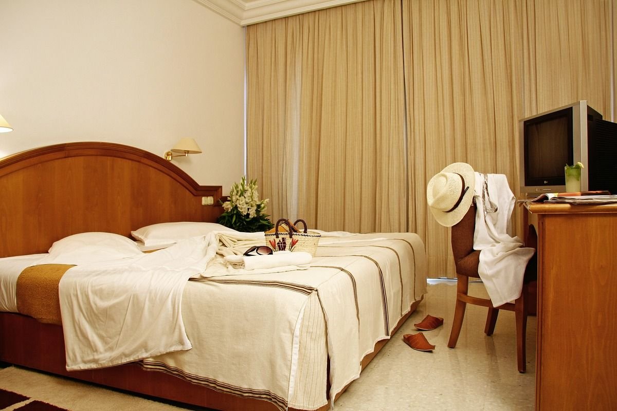 standardowy: 2-os. (możliwość 1 lub 2 dostawek), ok. 32 m², zadbany, indywidualnie sterowana klimatyzacja (15.06-15.09), łazienka (wanna, prysznic, wc; suszarka), telewizja satelitarna, telefon, minibar (płatny); bezpłatne łóżeczko dla dziecka do 2 lat na zamówienie przed przyjazdem; balkon (stolik i krzesełka), widok na morze.