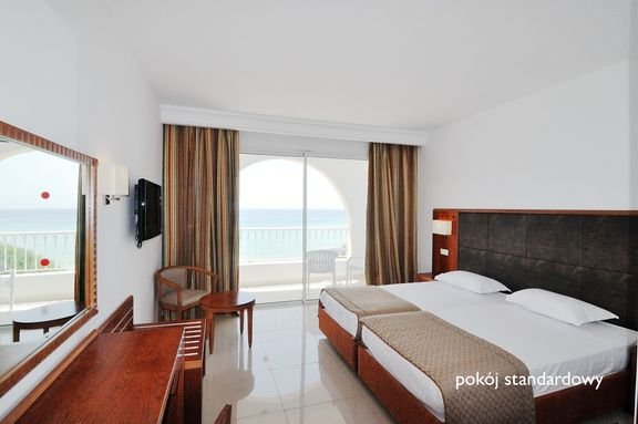 standardowy: 2-os. (możliwość 1 dostawki), ok. 25 m², stylowy, klimatyzowany (15.06-15.09) lub ogrzewany, łazienka (wanna, wc; suszarka), internet bezprzewodowy, telewizja satelitarna, telefon, sejf, (depozyt ok. 70 TND za klucz do sejfu), lodówka; łóżeczko dla dziecka do 2 lat na zamówienie przed przyjazdem; balkon lub taras (stolik i krzesełka), widok na ogród; widok na morze za dopłatą; rodzinny: 3-os. (możliwość 1 dostawki), ok. 30 m², 2 połączone ze sobą pokoje bez drzwi z jedną łazienką; wyposażenie jak w pokoju standardowym, widok na ogród; pokój rodzinny za dopłatą; rodzinny suite: 3-os. (możliwość 1 dostawki), ok. 51 m², sypialnia oraz pokój dzienny z łazienką i osobnym wc; wyposażenie jak w pokoju standardowym, widok na ogród; pokój rodzinny suite za dopłatą.