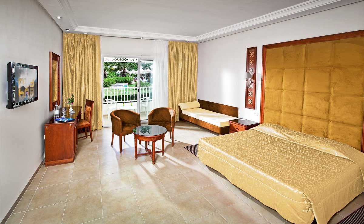 standardowy: 2-os. (możliwość 1 lub 2 dostawek), ok. 30-38 m², stylowy, klimatyzowany lub ogrzewany, łazienka (wanna lub prysznic, wc; suszarka), telewizja satelitarna, telefon, minibar, sejf; bezpłatne łóżeczko dla dziecka do 2 lat na zamówienie przed przyjazdem; balkon lub taras (stolik i krzesełka); pokój z 2 dostawkami, boczny widok na morze i frontalny widok na morze za dopłatą.