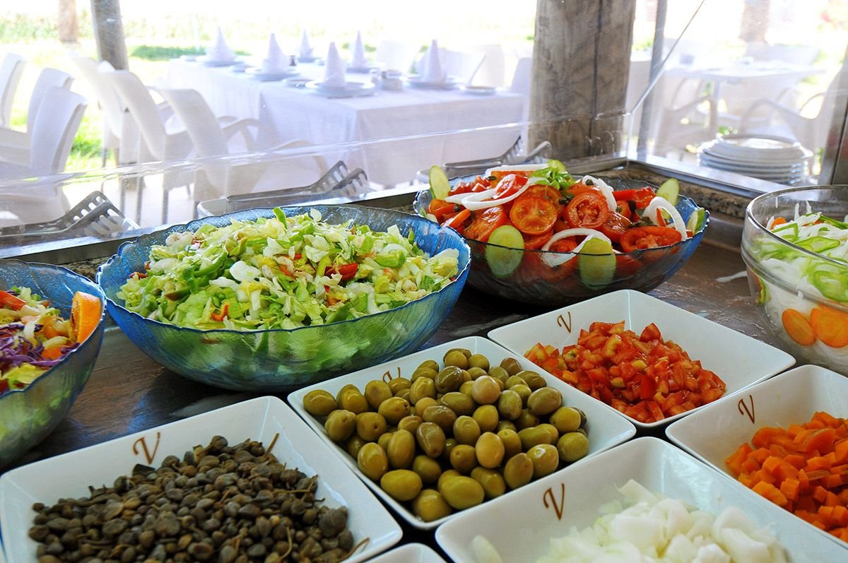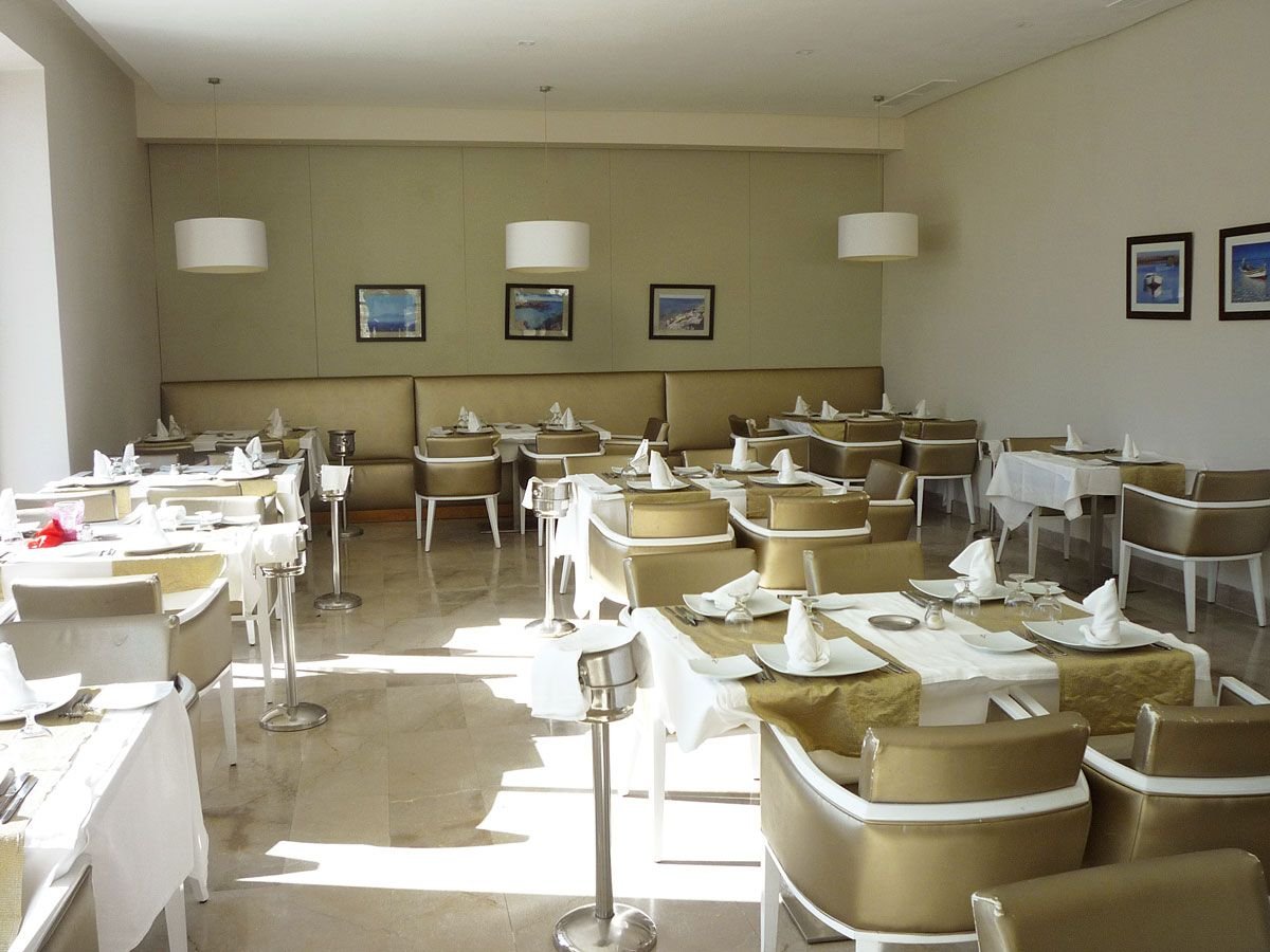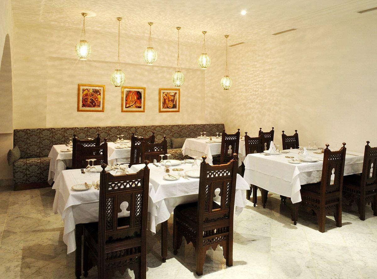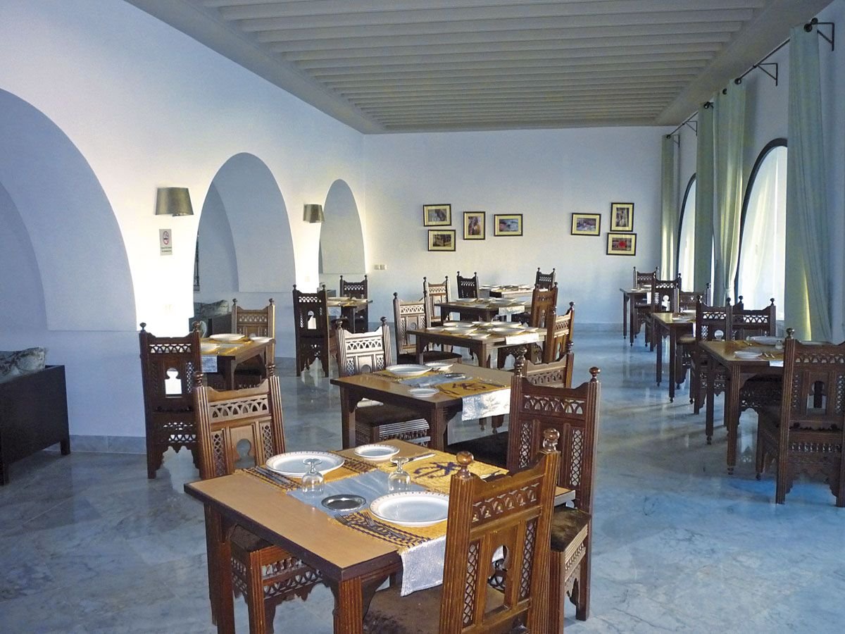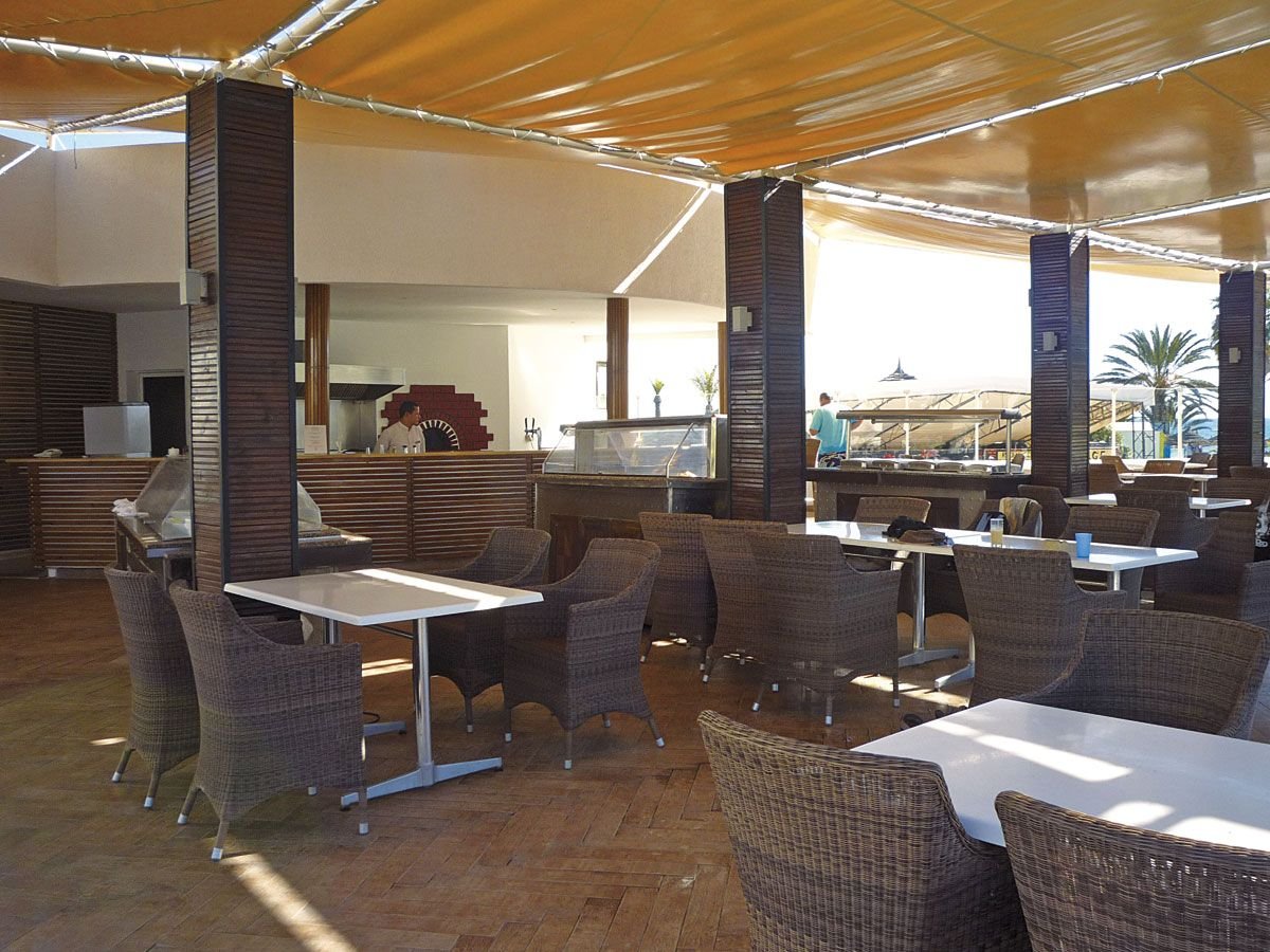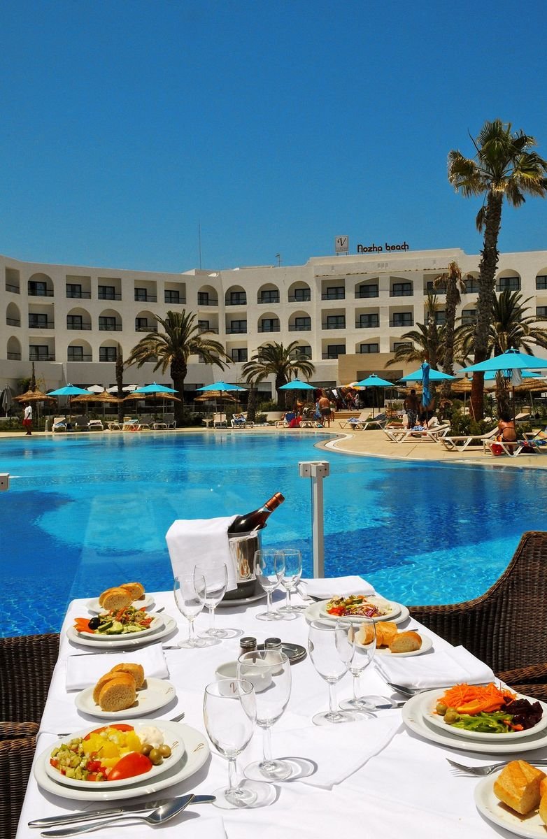 śniadanie (7.00-10.00), obiad (12.30-14.30), kolacja (18.30-21.00) w formie bufetu w restauracji głównej Fleur d'Orange; woda mineralna, napoje gazowane, lokalne piwa i wina do obiadu i kolacji; późne śniadanie kontynentalne (10.00-11.00); popołudniowe przekąski: naleśniki, minipizza, kanapki, owoce sezonowe, ciasta, lody (12.30-16.00) w snack-barze przy basenie i (12.30-15.00) w snack-barze na plaży; podwieczorek (16.30-17.30); raz na pobyt kolacja w restauracjach à la carte El Maro lub Dar Nozha (19.30-21.00); kawa, herbata, mleko, woda mineralna, lokalne napoje bezalkoholowe, lokalne alkohole: piwa, aperitify, wódka, whisky, rum, gin, likiery (10.00-18.00) w barze na plaży oraz (9.00-24.00) w barze przy basenie i w barze w lobby.
