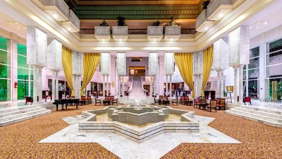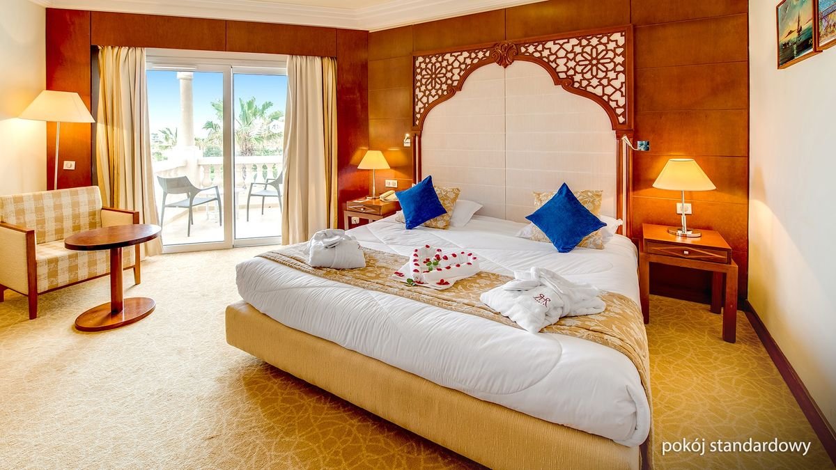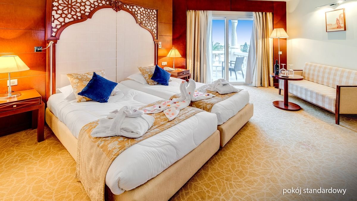 Czas na pełne relaksu i słońca wakacje w Tunezji! Położony w dzielnicy hotelowej Yasmin Hammamet, wabi turystów nie tylko piękną, piaszczystą plażą i turkusowym morzem, ale i szerokim zapleczem sportowo-rekreacyjnym – można tu pograć w siatkówkę plażową czy tenisa ziemnego, poćwiczyć na sali fitness lub spróbować swoich sił w sportach wodnych, a następnie w otoczeniu strzelistych palm zrelaksować się w basenach i chłonąć promienie słońca. To idealne miejsce na wakacje z rodziną – dzieci bawią się tu na placu zabaw oraz biorą udział w animacjach, które spodobają się również starszym Gościom. Wnętrza zostały zaprojektowane z dbałością o każdy szczegół – uwagę przykuwa wystrój lobby z fontanną w kształcie gwiazdy oraz stylowo urządzone pokoje, w których orientalne elementy przeplatają się z nowoczesnością, nadając tym samym niezwykły klimat tego miejsca. Na miejscu aż 23 dobrze wyposażone sale konferencyjne, dlatego polecany jest również na wszelkie wyjazdy służbowe i wymagającej eleganckiej oprawy imprezy okolicznościowe.