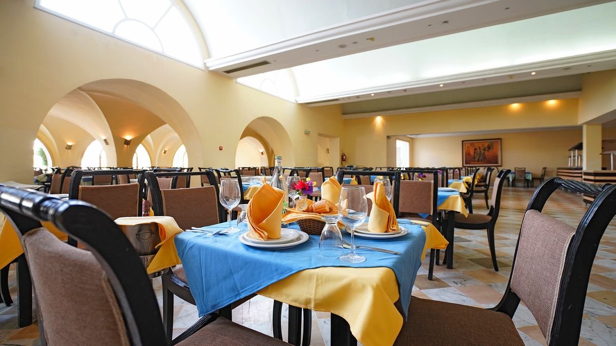 śniadanie (7.00-9.30), obiad (12.30-14.00), kolacja (19.00-21.00) w formie bufetu w restauracji głównej; przekąski (15.30-17.00) w barze Piña Colada; lokalne napoje bezalkoholowe oraz lokalne alkohole (9.00-23.00) w barze Piña Colada; wymagane noszenie opasek all inclusive.