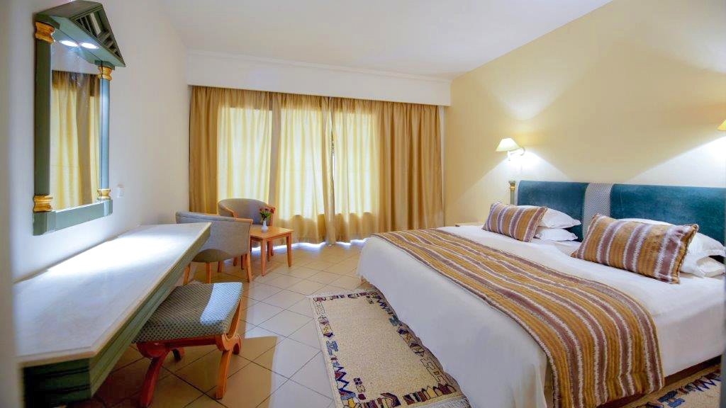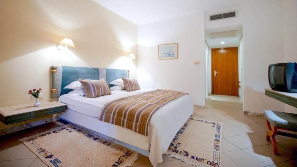 standardowy: 2-os. (możliwość 1 dostawki dla os. dorosłej lub 2 dostawek dla dzieci), ok. 24 m², wygodnie urządzony, klimatyzowany, łazienka (wanna lub prysznic, wc; suszarka), telewizja satelitarna, telefon, lodówka (na zamówienie, płatna: 5 TND/dzień); bezpłatne łóżeczko dla dziecka do 2 lat na zamówienie przed przyjazdem; balkon lub taras (stolik i krzesełka).