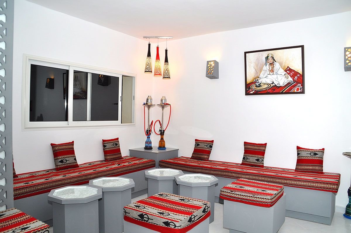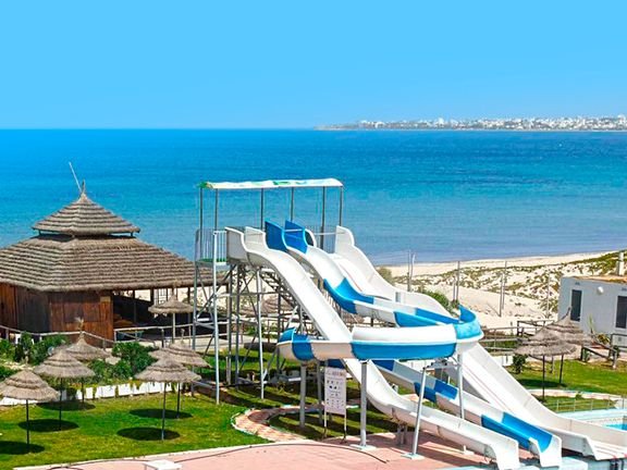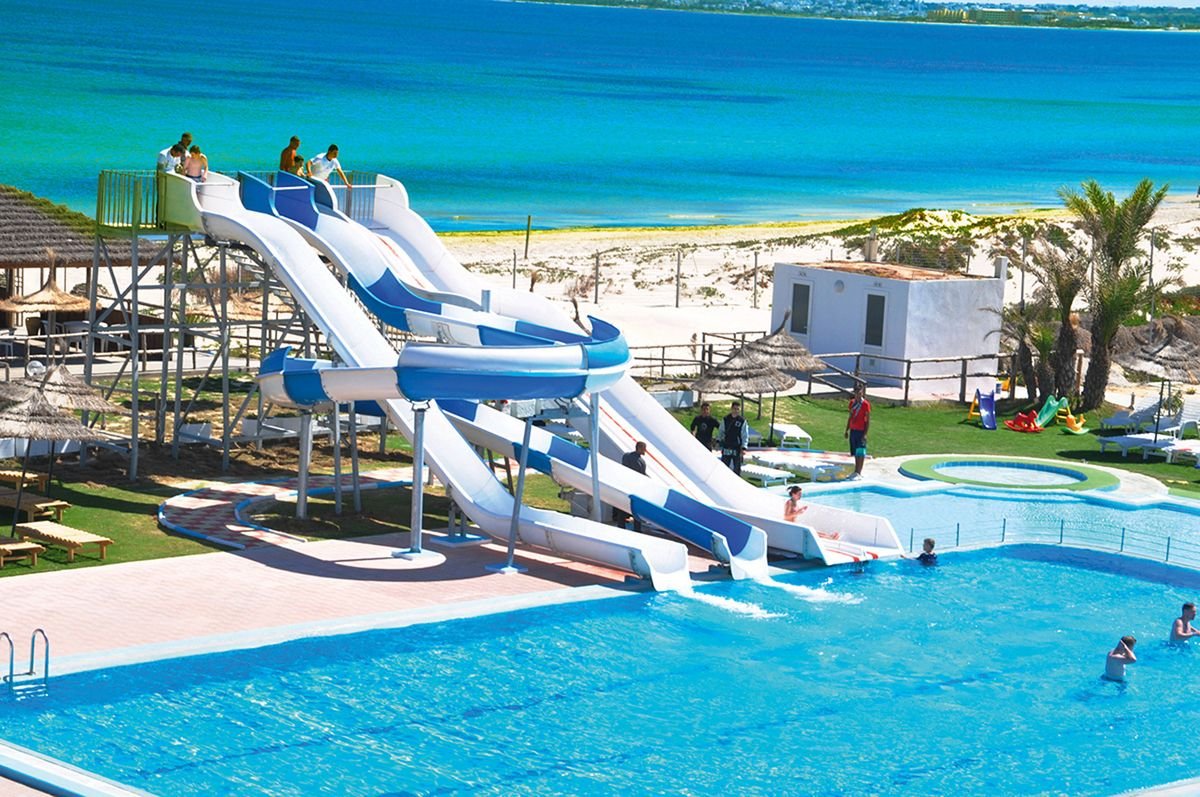 basen, prostokątny kształt, słodka woda, ok. 400 m², gł. 1,2-2 m, brodzik dla dzieci, słodka woda, ok. 45 m², gł. 0,5 m, 3 zjeżdżalnie, przy basenie bezpłatne parasole i leżaki; kort tenisowy (w ciągu dnia), fitness, rowerki wodne, windsurfing; pokój i plac zabaw dla dzieci, miniklub (4-12 lat), amfiteatr, dyskoteka, animacje dla dorosłych i dzieci, zabawy sportowe, nauka tańca, nauka języka; za opłatą: centrum wellness: masaż (ok. 40 TND).