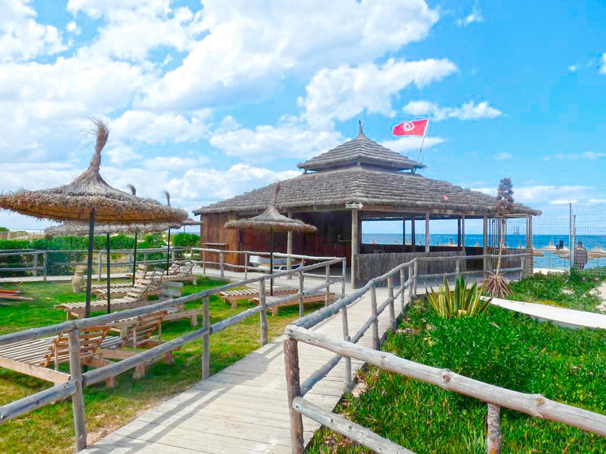hotelowa, piaszczysta, łagodne zejście do morza, bezpośrednio przy hotelu, bezpłatne parasole i leżaki, ręczniki za kaucją (ok. 10 TND).