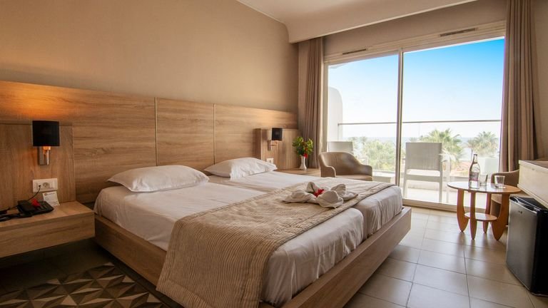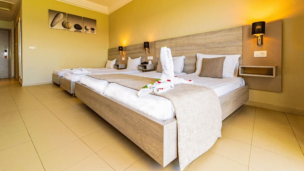 Doskonałe miejsce na beztroski, rodzinny wypoczynek! Zbudowany z rozmachem, utrzymany w klasycznym stylu i położony bezpośrednio przy piaszczystej plaży z bezpłatnym serwisem, przypadnie do gustu osobom, które cenią komfort, malownicze widoki i wspaniały wakacyjny klimat. Do dyspozycji są tu 2 baseny oraz brodzik dla najmłodszych, dzięki czemu relaks i zabawa mogą iść w parze. Dla aktywnych przygotowano ciekawą ofertę sportowo-rekreacyjną obejmującą m.in. centrum fitness, aerobik oraz siatkówkę plażową. W ciągu dnia o dobrą zabawę dla każdego dba grupa animatorów, a wieczorami czas umilają występy na żywo. Całość udanego urlopu dopełniają komfortowe pokoje – polecamy zwłaszcza te z widokiem na morze oraz znana i lubiana formuła all inclusive.