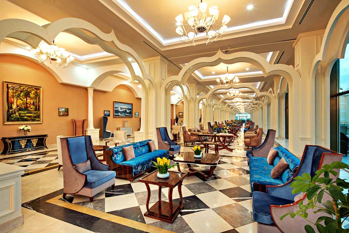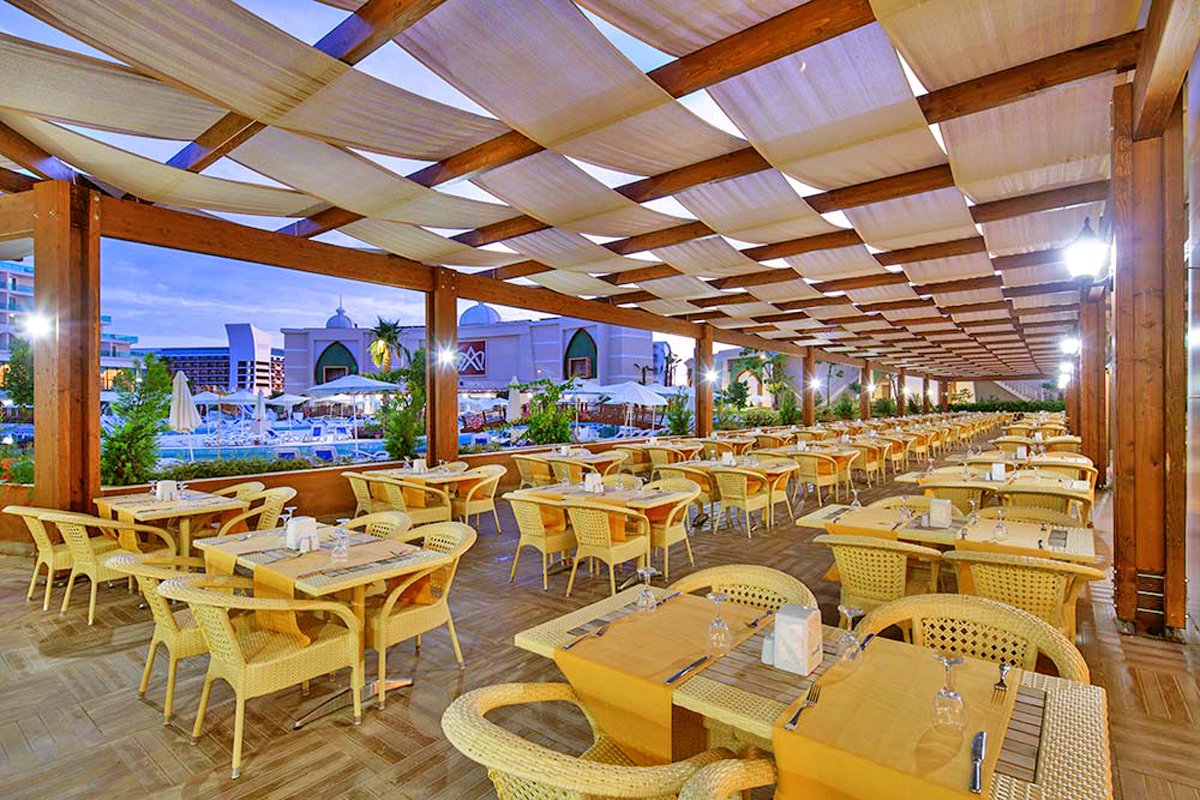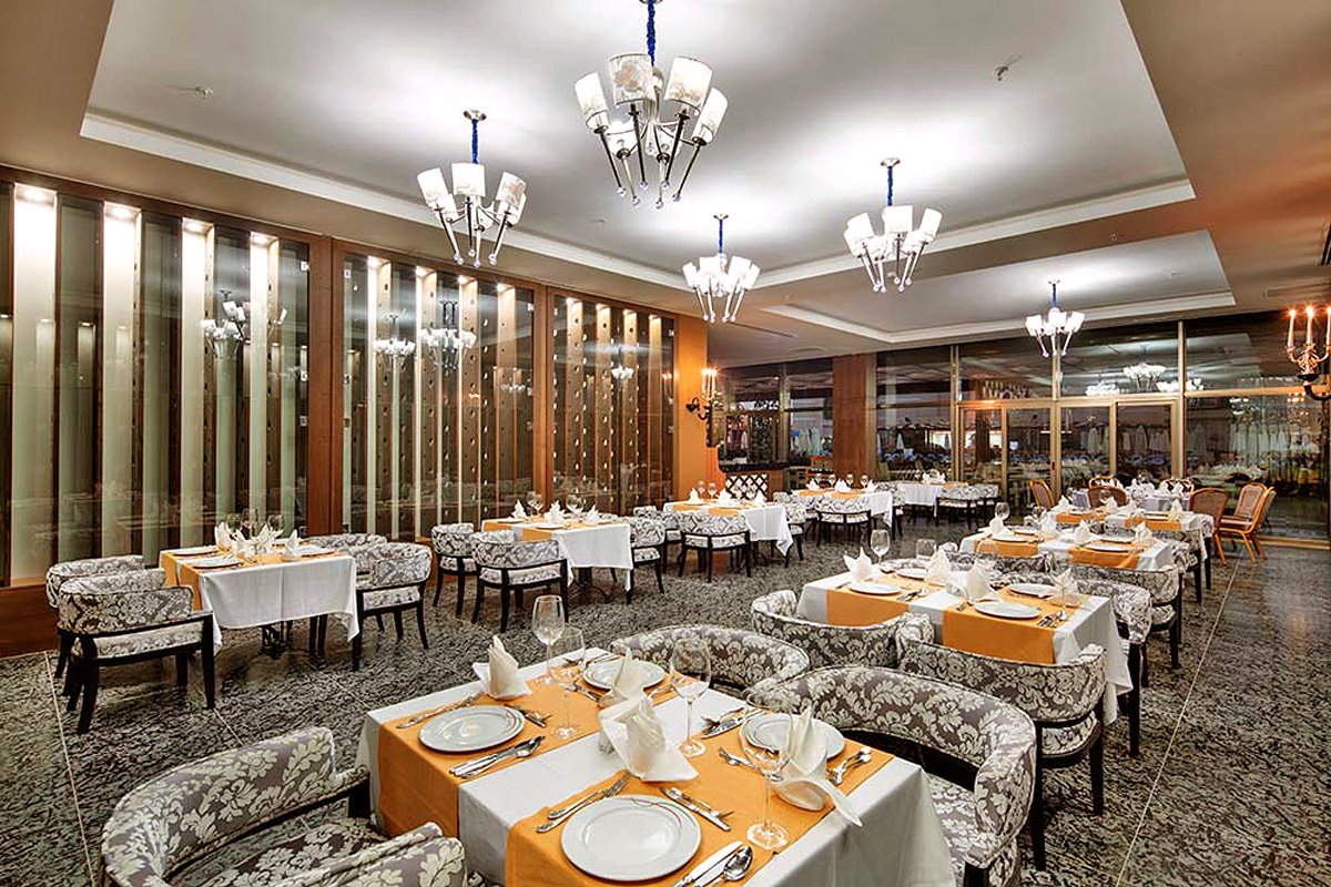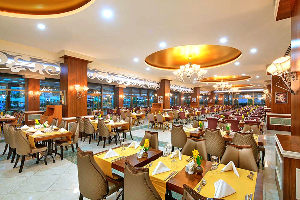 pięciogwiazdkowy, zbudowany w 2013 r., 804 pokoje, 2 budynki, 6 pięter, 9 wind, przestronne, eleganckie lobby, całodobowa recepcja, restauracja – dania w formie bufetu, kuchnia międzynarodowa, 3 restauracje à la carte: kuchnia włoska, owoce morza, dania z grilla, w restauracjach dostępne foteliki i menu dla dzieci, 11 barów, w tym: w lobby, na plaży, przy basenie, w dyskotece; kantor, minimarket, sklep z pamiątkami, centrum konferencyjne dla 700 osób, taras z widokiem na basen, bezpłatny internet bezprzewodowy w miejscach ogólnodostępnych; za opłatą: room-service, sejf w recepcji, kawiarenka internetowa, pralnia, fryzjer, salon urody, opiekunka do dziecka; akceptowane karty kredytowe: Visa, MasterCard.