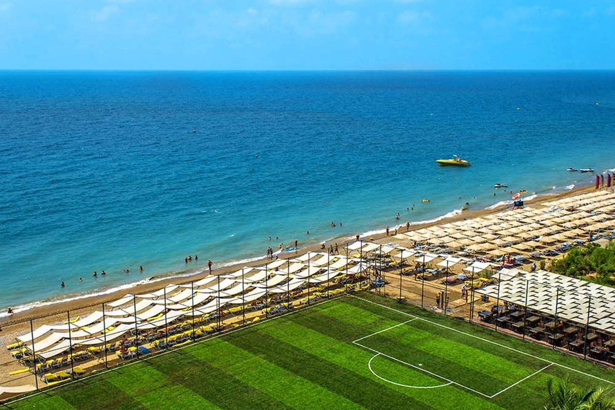 basen główny, słodka woda, ok. 3885 m², gł. 1,4 m, basen, ok. 180 m², gł. 1,2 m, basen dla dzieci, słodka woda, ok. 75 m², gł. 0,4 m, 7 zdjeżdżalni dla dorosłych i 2 dla dzieci, przy basenach bezpłatne parasole, leżaki, materace i ręczniki; siłownia, aerobik, rzutki, tenis stołowy, szachy, koszykówka, siatkówka, siatkówka plażowa, badminton; plac zabaw dla dzieci, miniklub (4-12 lat), animacje dla dorosłych i dzieci, dyskoteka; za opłatą: kręgle, bilard, sporty wodne na plaży; centrum spa: bezpłatnie: kryty basen: słodka woda, ok. 120 m², gł. 1,2 m, łaźnia turecka, sauna; za opłatą: masaże i zabiegi pielęgnacyjne.