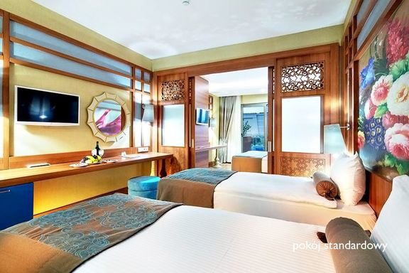 Zachwycający rozmachem i unikatową architekturą, zadbany i elegancko wykończony hotel zaprasza na bajkowe wakacje w gronie rodziny! Świetny kompleks basenowy ze zjeżdżalniami i bogate zaplecze sportowo-rekreacyjne nie pozwolą nawet na odrobinę nudy. Bogata formuła all inclusive, przekąski i napoje serwowane przez całą dobę, 4 restauracje i aż 11 barów w pełni zasługują na swoje 5 gwiazdek! Sympatyczna obsługa i zadbane, ładnie urządzone pokoje zapewniają komfort i udany wypoczynek.