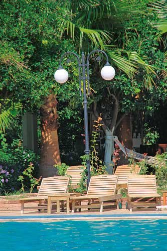 basen, powierzchnia ok. 606 m², słodka woda, głębokość 1,65 m; basen ze zjeżdżalniami, powierzchnia ok. 145 m², słodka woda, głębokość 1,10 m; Residence basen, powierzchnia ok. 330 m², słodka woda, głębokość 1,35-1,99 m; brodzik, powierzchnia ok. 7 m², słodka woda, głębokość 0,33 m; przy basenach bezpłatne parasole, leżaki, materace i ręczniki; 2 korty do tenisa ziemnego (oświetlenie płatne), tenis stołowy, koszykówka, siatkówka plażowa, rzutki, fitness, sauna, łaźnia turecka, mini-klub, plac zabaw dla dzieci, salon gier, mini-disco, amfiteatr, dzienne i wieczorne animacje; za opłatą: bilard, zabiegi w Spa, masaż, peeling, sporty wodne na plaży, dyskoteka, wypożyczalnia rowerów.