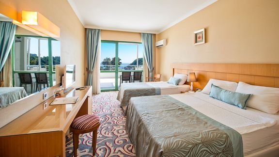 Rodzinny kompleks położony na dużej powierzchni, otoczony zielenią, świetnie przygotowany na przyjęcie najmłodszych. Z hotelu łatwo dostać się na plażę z pomostem, a z pokoi można podziwiać błękitne morze. Baseny, zjeżdżalnie, miniklub, animacje i wiele innych aktywności umilają czas wczasowiczom w każdym wieku. Na miejscu bujny ogród z oczkiem wodnym i miejscem do relaksu po dniu pełnym wrażeń.
