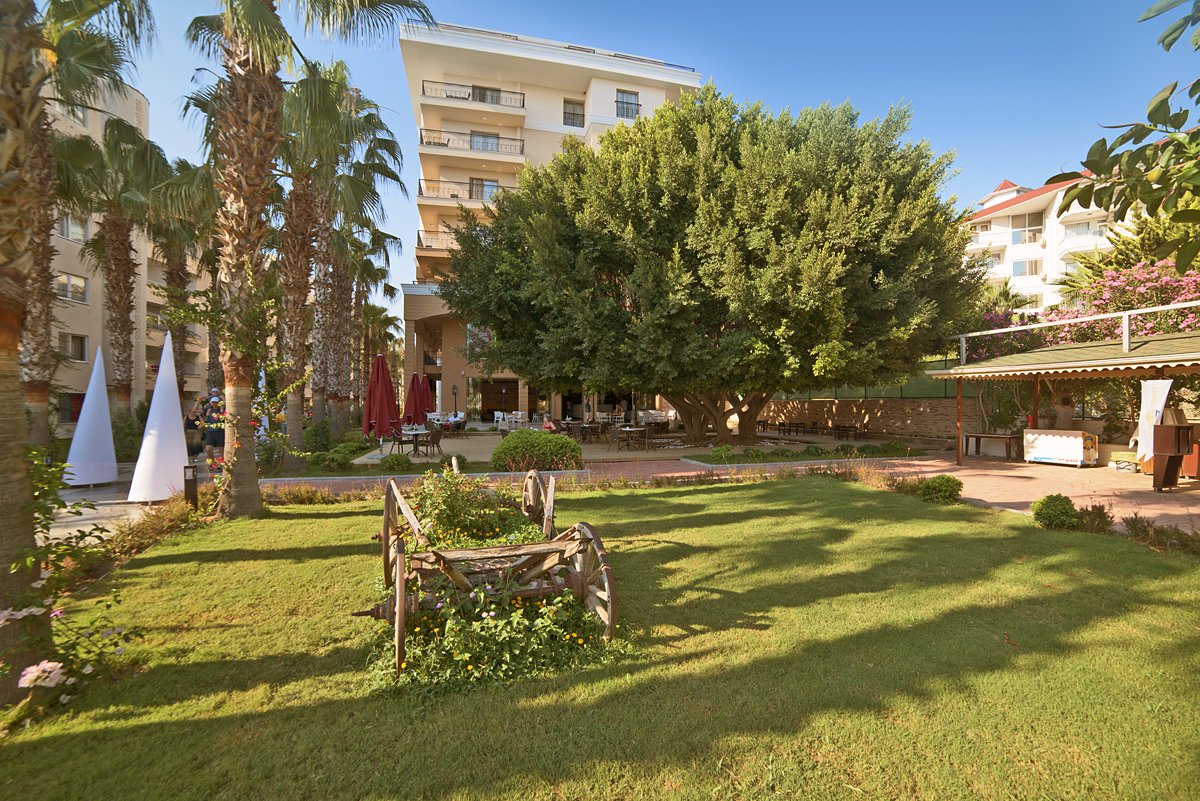 czterogwiazdkowy, zbudowany w 1991 r., odnowiony w 2009 r., rozbudowany w 2014 r., 360 pokoi, 6 budynków, 5 pięter, 7 wind, lobby, recepcja, restauracja główna – dania w formie bufetu, kuchnia turecka i międzynarodowa, restauracja à la carte – kuchnia turecka lub dania rybne, dostępne menu dla dzieci, 3 bary: w lobby, na plaży, przy basenie; kantor, minimarket, kiosk, jubiler, przechowalnia bagażu, parking; centrum konferencyjne dla 200 osób, ogród, bezpłatny internet bezprzewodowy w lobby; za opłatą: fryzjer, pralnia; akceptowane karty kredytowe: Visa, MasterCard, American Express.