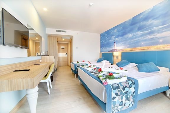standardowy: 2-os. (możliwość 1 dostawki dla osoby dorosłej lub 2 dzieci), ok. 29 m², klimatyzowany, łazienka (prysznic, wc; suszarka), telewizja satelitarna, telefon, minibar, sejf; balkon; rodzinny: dla 4 osób, ok. 62 m², wyposażenie jak w pokoju standardowym; balkon; pokoje rodzinne za dopłatą.