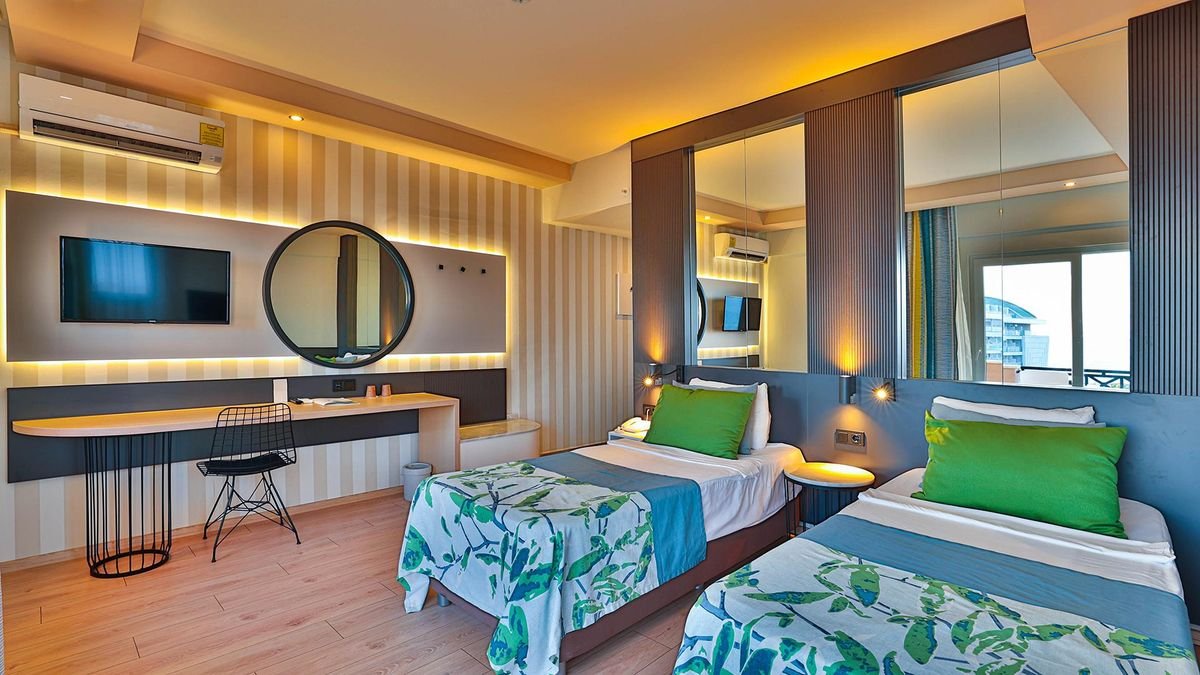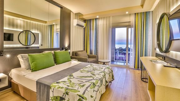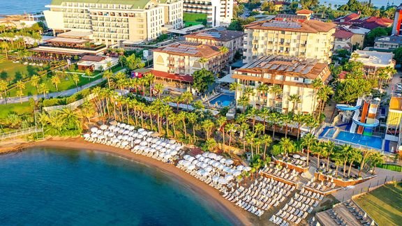 Położony przy cudownej plaży w zatoce, zaprasza na wyjątkowy urlop w swobodnej, wakacyjnej atmosferze. Tutaj można prawdziwie odpocząć i spędzić czas z rodziną czy przyjaciółmi. Oprócz oferty sportowej na Gości hotelu czekają baseny, w tym 1 ze zjeżdżalniami, atrakcyjny program animacji, a po dniu pełnym wrażeń relaks w centrum spa, oferującym m.in. cudowne masaże. To również raj dla dzieci, które całymi dniami mogą szaleć nie tylko na plaży, ale również w miniklubie! Piękne widoki najlepiej podziwiać z hotelowego tarasu, polecamy również długie spacery po okolicy oraz wycieczkę do słynnej Alanyi.