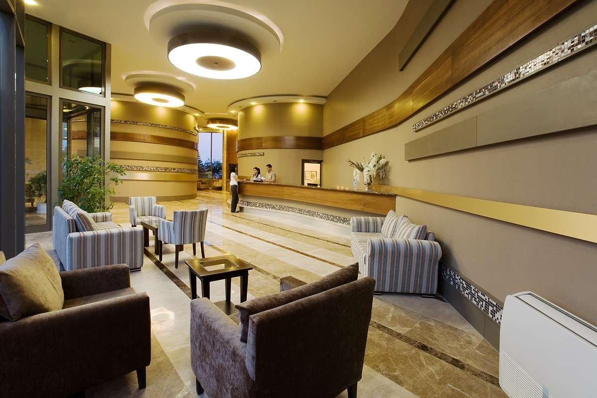 pięciogwiazdkowy, komfortowy, zbudowany w 1988 r., odnowiony w 2010 r., 414 pokoi, budynek główny, 6 pięter i 26 bungalowów, 3 piętra, 4 windy (w budynku głównym), lobby, całodobowa recepcja, restauracja główna – dania w formie bufetu, kuchnia międzynarodowa, dostępne foteliki i menu dla dzieci, 3 restauracje à la carte – kuchnia wschodnia, turecka i rybna; bary: Aura, Aqua i Moon, snack-bar, minimarket, butik; centrum konferencyjne dla 300 osób, taras z widokiem na morze, ogród, bezpłatny internet bezprzewodowy w lobby; za opłatą: punkt internetowy, room-service, fryzjer, fotograf, wypożyczalnia samochodów, pralnia; akceptowane karty kredytowe: Visa, MasterCard.