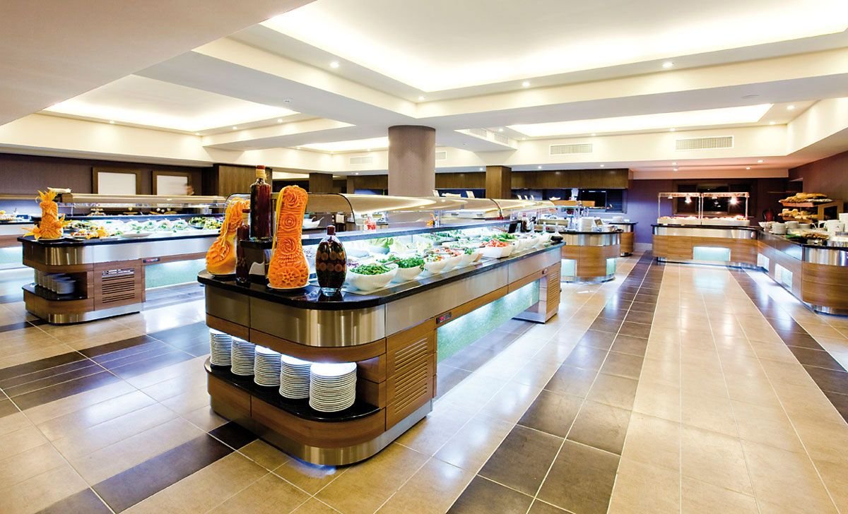 śniadanie (7.00--10.30), obiad (12.30-14.30), kolacja (19.00-21.30) w formie bufetu w restauracji głównej; kawa, herbata i ciasto w wyznaczonym barze (15.00-17.00); przekąski w snack-barze (12.00-16.00), nocna zupa (23.30-0.30), lody w restauracji głównej (19.00-21.00); napoje bezalkoholowe i lokalne napoje alkoholowe w wyznaczonym barze (10.00-24.00); raz na pobyt kolacja w restauracji à la carte (wymagana rezerwacja); wymagane noszenie opasek all inclusive.