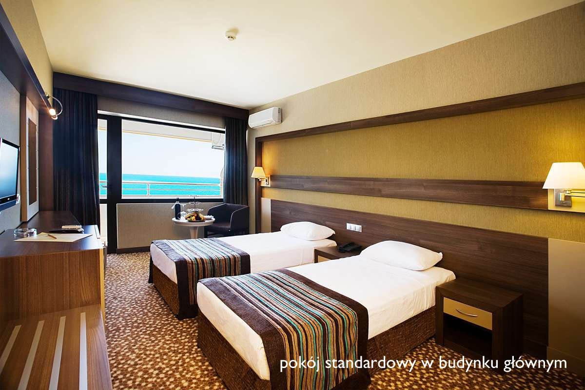 standardowy w bungalowie: 2-os. (możliwość 1 lub 2 dostawek dla dzieci – łóżko piętrowe), ok. 25 m², zadbany, indywidualnie sterowana klimatyzacja, łazienka (wanna lub prysznic, wc; suszarka), telewizja satelitarna, telefon, sejf, minibar (woda na powitanie); bezpłatne łóżeczko dla dziecka do 2 lat na zamówienie przed przyjazdem; balkon (stolik i krzesełka), pokój standardowy z 2 dostawkami za dopłatą; standardowy w budynku głównym: 2-os. (możliwość 1 dostawki), 21-24 m², komfortowy; wyposażenie jak w pokoju standardowym w bungalowie; pokój w budynku głównym za dopłatą.