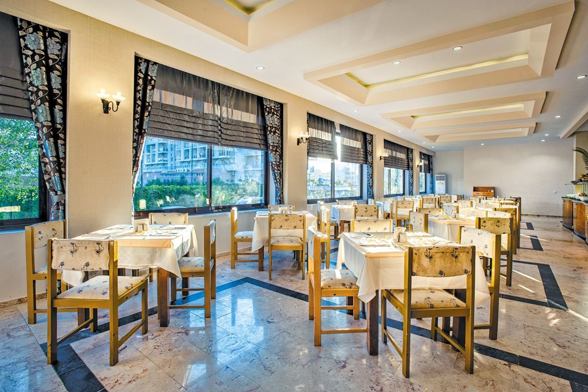 czterogwiazdkowy, zbudowany w 1989 r., odnowiony w 2013 r., 320 pokoi, 1 budynek, 6 pięter, winda, eleganckie lobby, całodobowa recepcja, restauracja główna – dania w formie bufetu, kuchnia międzynarodowa i turecka, dania wegetariańskie, 6 barów: w lobby, w ogrodzie, w restauracji, na plaży, snack-bar, dyskoteka w hotelu Arancia; sklepy z pamiątkami, biżuterią, galanterią skórzaną; taras z widokiem na teren hotelu i plażę, ogród, centrum konferencyjne dla 200 osób, internet bezprzewodowy (transfer do 100 MB, po przekroczeniu płatny); za opłatą: kawiarenka internetowa, fryzjer, fotograf, opiekunka do dziecka; pokoje dla niepełnosprawnych; akceptowane karty kredytowe: Visa, MasterCard.