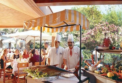śniadanie (7.00-10.00), późne śniadanie (10:00-11:00), obiad (12.30-14.30), kolacja (18.30-21.00) w formie bufetu w restauracji głównej; lody do obiadu i kolacji; przekąski w barze Play (12.30-14.30); kawa, herbata i ciasto w barze Selale (15.00-17.00); nocne przekąski w wyznaczonym barze (23.30-00.30); napoje bezalkoholowe i lokalne napoje alkoholowe w wyznaczonym barze (10.00-1.00).