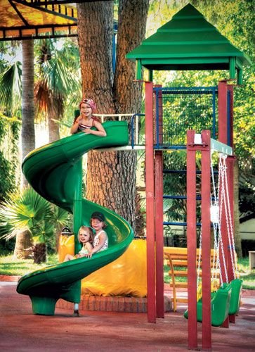 3 baseny, nieregularny kształt, słodka woda, gł. 1,5-2,1 m: ok. 150 m², 147 m² i 140 m², brodzik dla dzieci, słodka woda, gł. 0,5 m, przy basenach bezpłatne parasole, leżaki, materace i ręczniki; basen kryty, ok. 86 m², brodzik dla dzieci; 3 korty tenisowe z wypożyczalnią sprzętu (oświetlenie płatne), tenis stołowy, rzutki, bule, szachy, siatkówka plażowa, piłka nożna, koszykówka, piłka wodna, łucznictwo, siłownia, fitness, aerobik, aqua aerobik; plac i pokój zabaw dla dzieci, miniklub (4-12 lat), minidisco, lekkie animacje dla dorosłych i dzieci; za opłatą: bilard, sporty wodne na plaży; centrum Spa - bezpłatnie: sauna, łaźnia parowa, łaźnia turecka - płatne: jacuzzi, peeling, masaże.