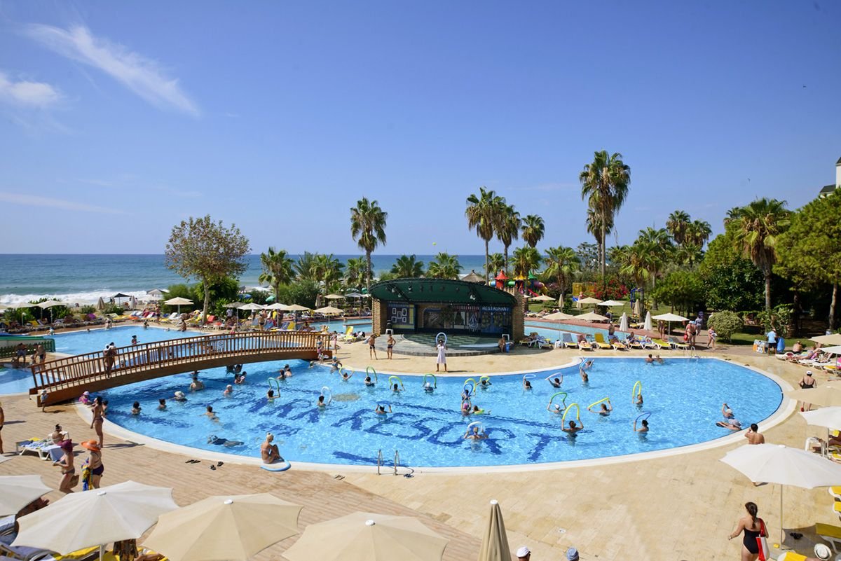 dwa baseny główne, słodka woda, ok. 380 i 240 m², gł. 1,4 m, basen ze zjeżdżalniami, słodka woda, ok. 200 m², gł. 1,15 m, zjeżdżalnie czynne w wyznaczonych godzinach, basen dla dzieci, słodka woda, ok. 24 m², gł. 0,4 m; kryty basen: słodka woda, ok. 100 m², gł. ok. 1,4 m, kryty basen dla dzieci: 20 m², gł. ok. 0,4 m, przy basenach bezpłatne parasole i leżaki, ręczniki za kaucją; kort tenisowy z płatnym oświetleniem i wypożyczalnią sprzętu, tenis stołowy, siatkówka plażowa, koszykówka, minipiłka nożna, centrum fitness, aerobik, rzutki, miniklub (4-12 lat), plac zabaw dla dzieci, pokój zabaw dla dzieci, minidisco, animacje dla dzieci i dorosłych: gry i zabawy sportowe, wieczorne show, okazjonalnie muzyka na żywo, karaoke, beach party, kino na wolnym powietrzu; za opłatą: pokój gier, kręgielnia, bilard, sporty wodne na plaży; centrum spa (8.00-20.00): bezpłatnie: sauna, wstęp do łaźni tureckiej, płatne: zabiegi pielęgnacyjne i masaże.