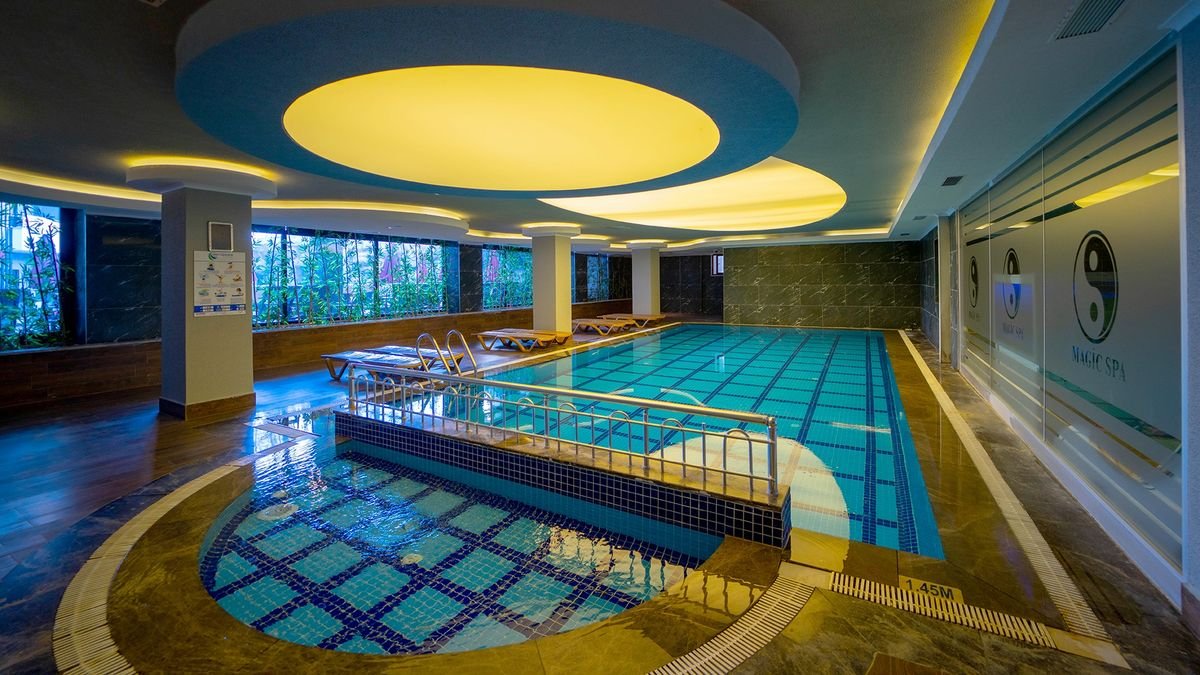 5 basenów: główny, nieregularny kształt, słodka woda, ok. 395 m², gł. ok. 1,4 m, basen z 3 zjeżdżalniami, słodka woda, ok. 90 m², gł. ok. 1,4 m, 2 baseny relaksacyjne: ok. 160 m² i ok. 125 m², gł. ok. 1,4 m, brodzik dla dzieci, ok. 34 m², gł. ok. 0,3 m, aquapark dla dzieci i dorosłych (planowane otwarcie 1.05.2022 r.), przy basenach bezpłatne parasole, leżaki, materace i ręczniki; aqua aerobik, rzutki, tenis stołowy, water polo, aerobik, siłownia; pokój i plac zabaw dla dzieci, miniklub (4-12 lat), animacje dla dorosłych i dzieci, wieczorne show, profesjonalne przedstawienia, muzyka na żywo, imprezy na plaży; centrum spa: bezpłatnie: kryty basen, ok. 65 m², gł. ok. 1,4 m, sauna, hammam, jacuzzi; płatne: masaże i zabiegi pielęgnacyjne; za opłatą: sporty wodne (oferta zewnętrzna).