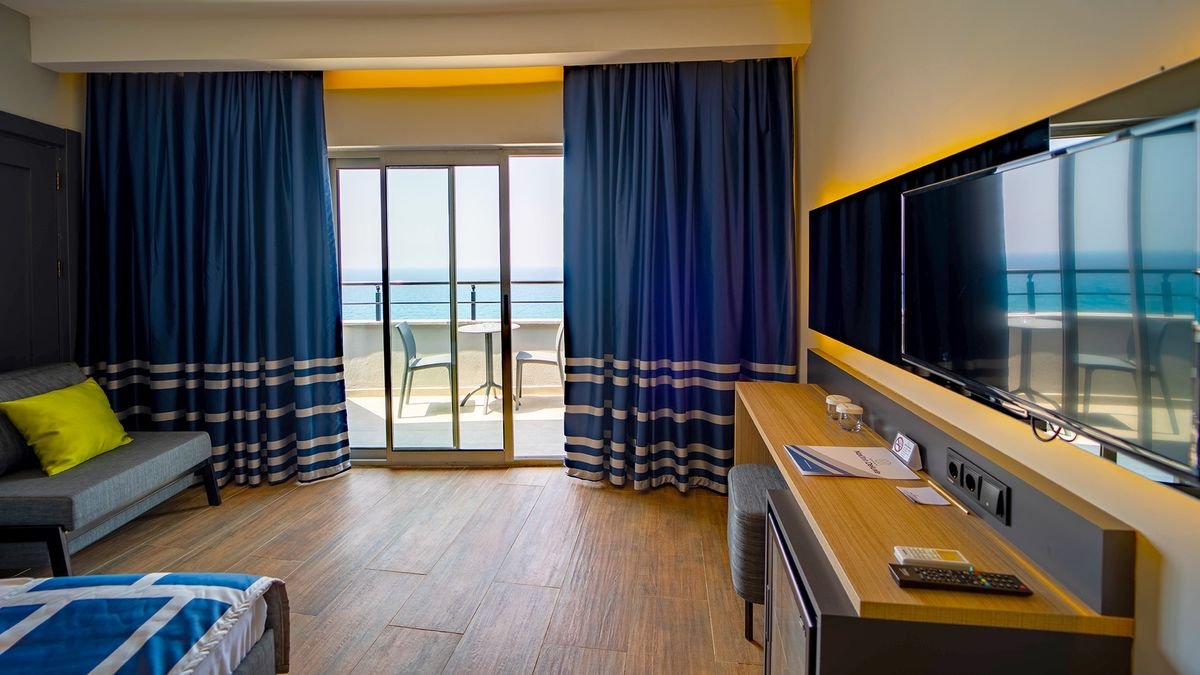 standardowy: 2-os. (możliwość 1 lub 2 dostawek), ok. 30-36 m², klimatyzowany, łazienka (prysznic, wc; suszarka), telewizja satelitarna, telefon, minibar (bezpłatne napoje bezalkoholowe i woda), zestaw do kawy/herbaty, sejf; bezpłatne łóżeczko dla dziecka do 2 lat na zamówienie przed przyjazdem; balkon lub taras (stolik i krzesełka), widok na morze.