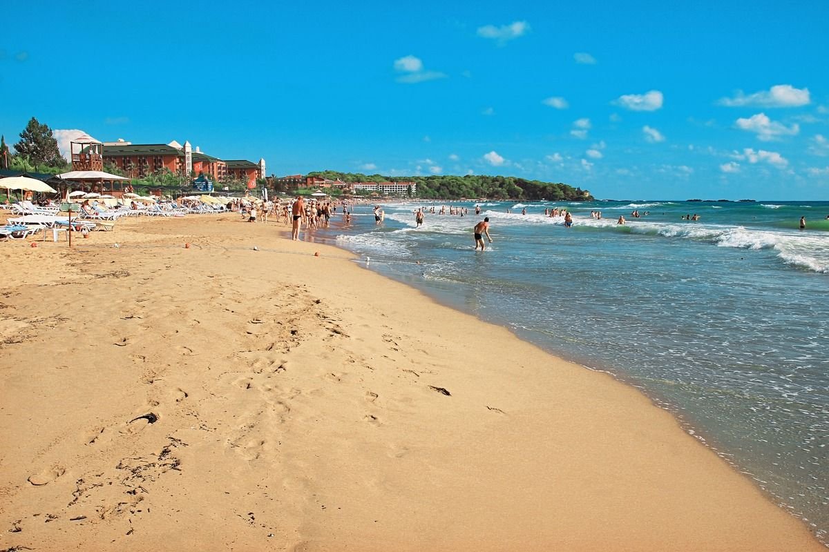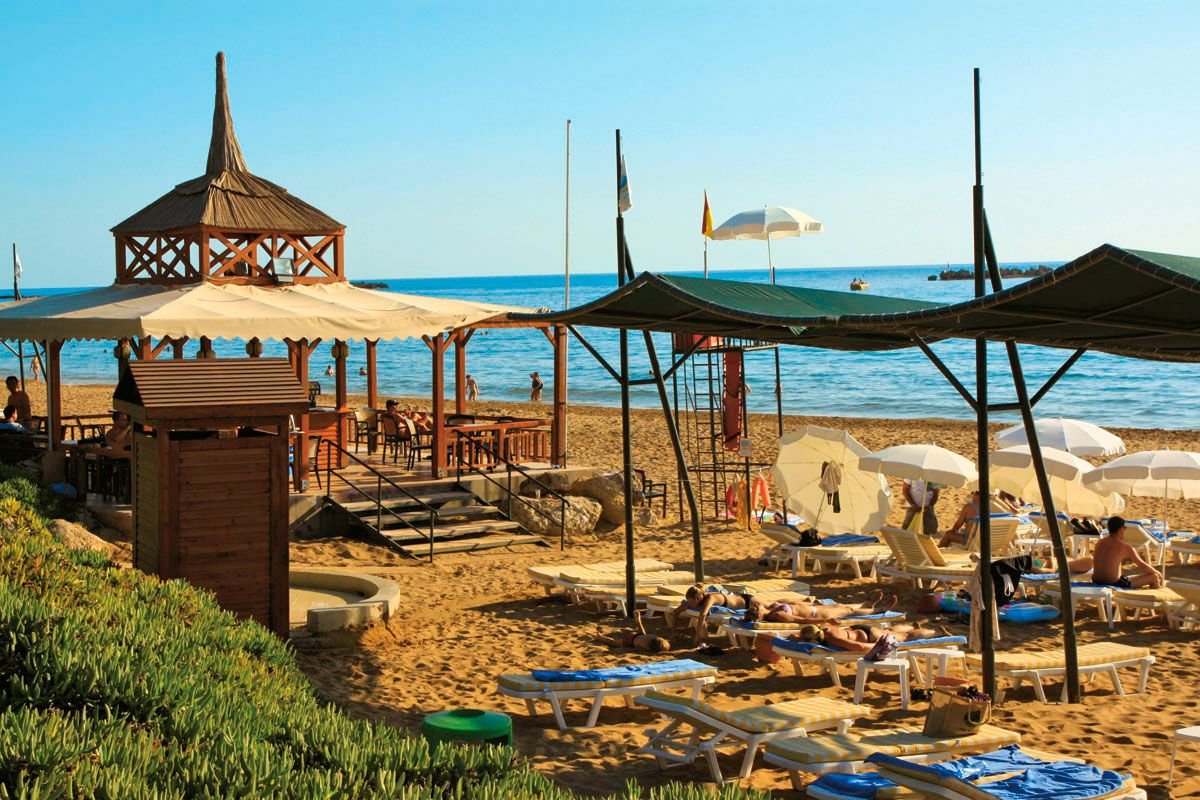 prywatna, szeroka, piaszczysta, łagodne zejście do morza, bezpośrednio przy hotelu, bezpłatne parasole, leżaki, materace i ręczniki plażowe; bar hotelowy objęty formułą all inclusive.