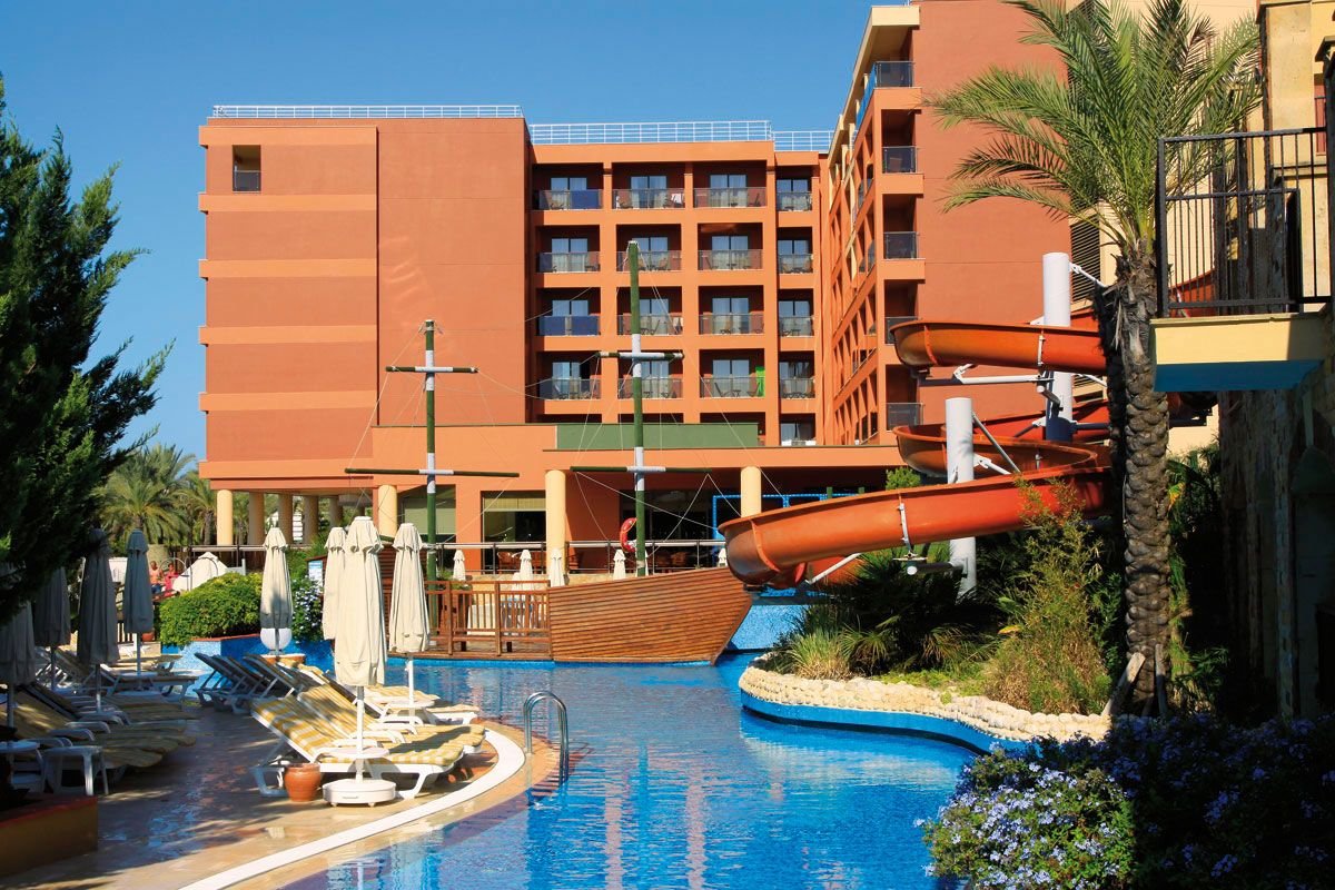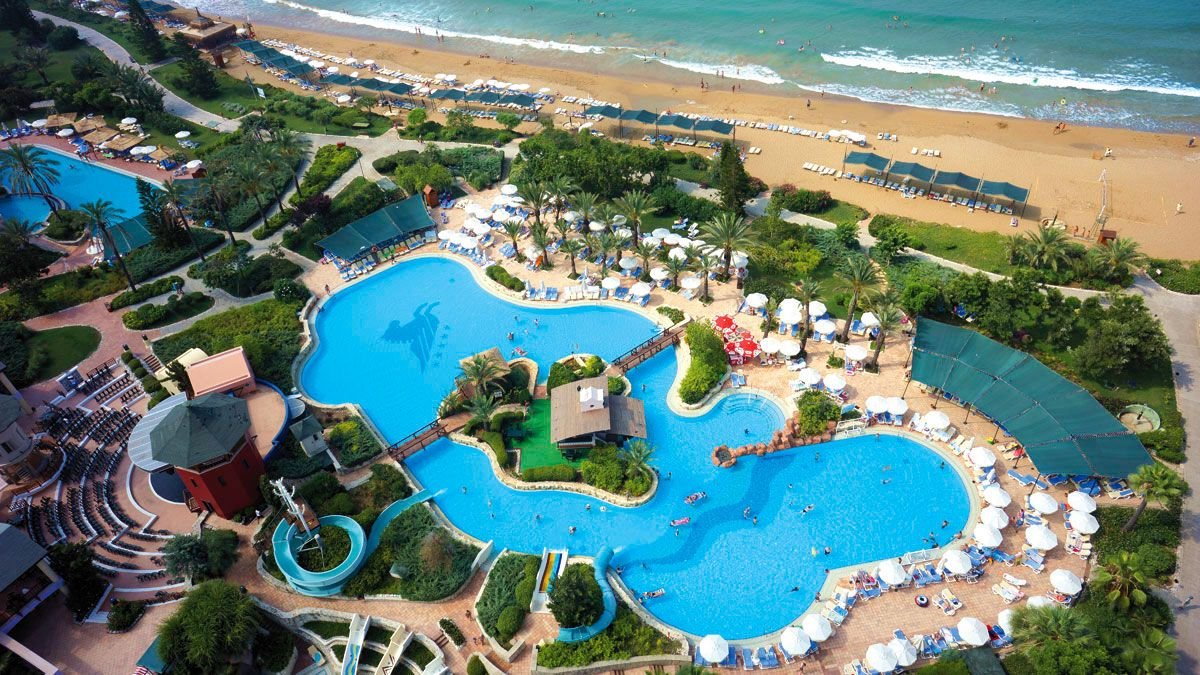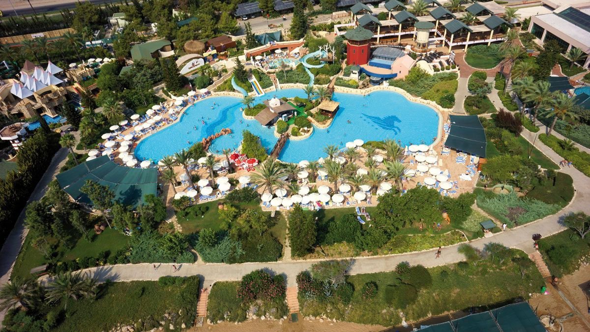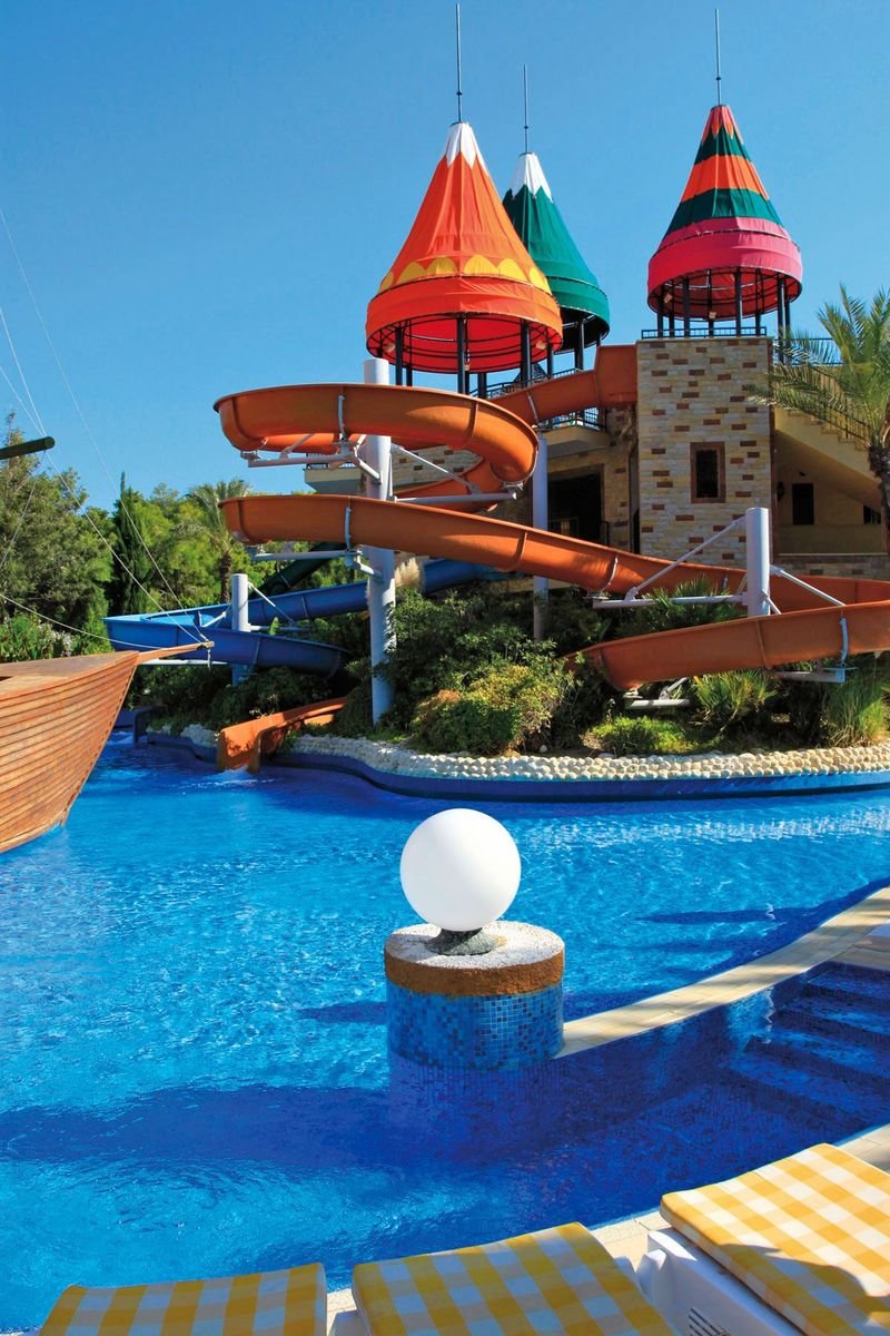 kompleks Resort i Royal: 2 duże baseny, słodka woda, ok. 1450 m² i ok. 830 m², gł. 1,5 m, basen ze zjeżdżalniami, słodka woda, ok. 940 m², gł. 1,5 m, basen relaksacyjny, słodka woda, ok. 300 m², gł. 1,5 m, baseny dla dzieci, ok. 82 m², 32 m², 20 m² i 75 m², słodka woda, gł. 0,3 m, przy basenach bezpłatne parasole, leżaki, materace i ręczniki; 2 baseny kryte, słodka woda, ok. 250 m² i ok. 225 m², gł. 1,5 m; korty tenisowe w części Royal (oświetlenie i wypożyczenie sprzętu płatne), tenis stołowy, siatkówka plażowa, koszykówka, rzutki, centrum fitness, aerobik, aqua aerobik, step, stretching, boccia; plac zabaw dla dzieci, miniklub, minidisco, kino i teatr dla dzieci, animacje w ciągu dnia i wieczorami; za opłatą: pokój gier w Pegasos Royal, bilard, kręgle, sporty wodne na plaży, łaźnia turecka, sauna, masaż, peeling, łaźnia parowa, dyskoteka na powietrzu.