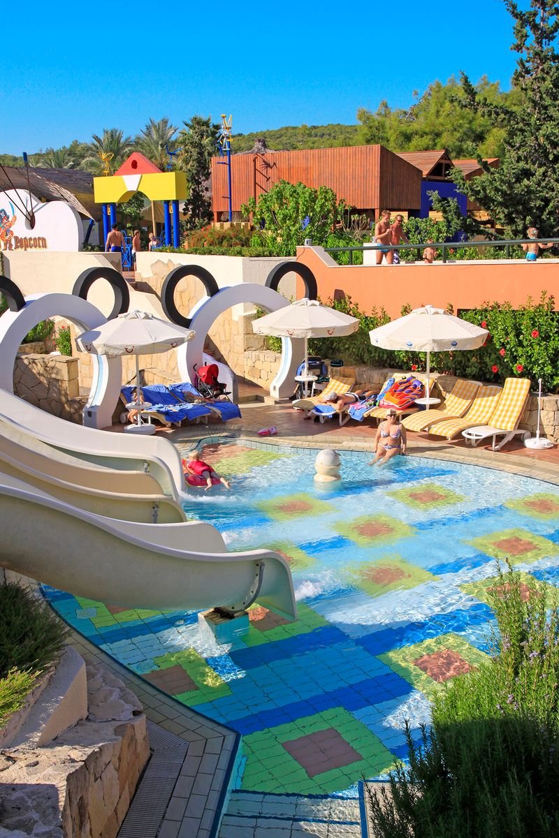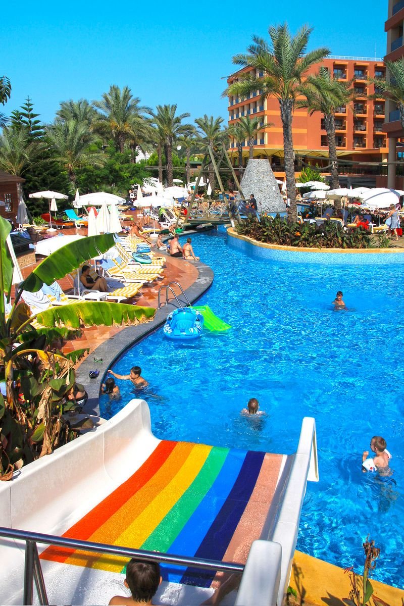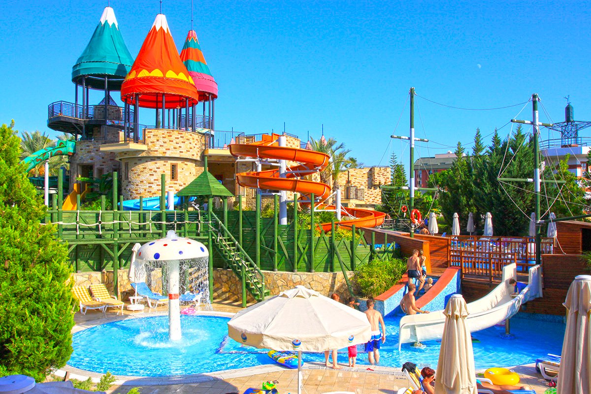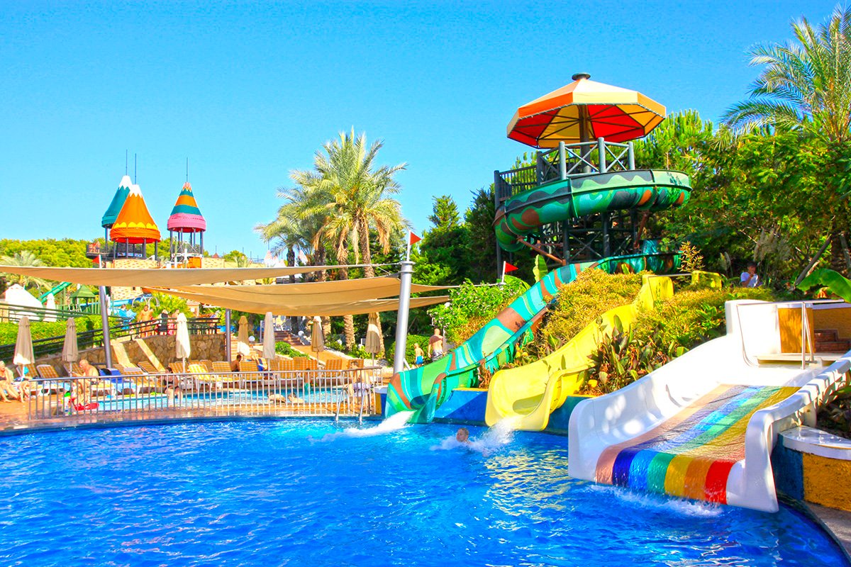 kompleks Resort i Royal: 2 duże baseny, słodka woda, ok. 1450 m² i ok. 830 m², gł. 1,5 m, basen ze zjeżdżalniami, słodka woda, ok. 940 m², gł. 1,5 m, basen relaksacyjny, słodka woda, ok. 300 m², gł. 1,5 m, baseny dla dzieci, ok. 82 m², 32 m², 20 m² i 75 m², słodka woda, gł. 0,3 m, przy basenach bezpłatne parasole, leżaki, materace i ręczniki; 2 baseny kryte, słodka woda, ok. 250 m² i ok. 225 m², gł. 1,5 m; korty tenisowe w części Royal (oświetlenie i wypożyczenie sprzętu płatne), tenis stołowy, siatkówka plażowa, koszykówka, rzutki, centrum fitness, aerobik, aqua aerobik, step, stretching, boccia; plac zabaw dla dzieci, miniklub, minidisco, kino i teatr dla dzieci, animacje w ciągu dnia i wieczorami; za opłatą: pokój gier w Pegasos Royal, bilard, kręgle, sporty wodne na plaży, łaźnia turecka, sauna, masaż, peeling, łaźnia parowa, dyskoteka na powietrzu.