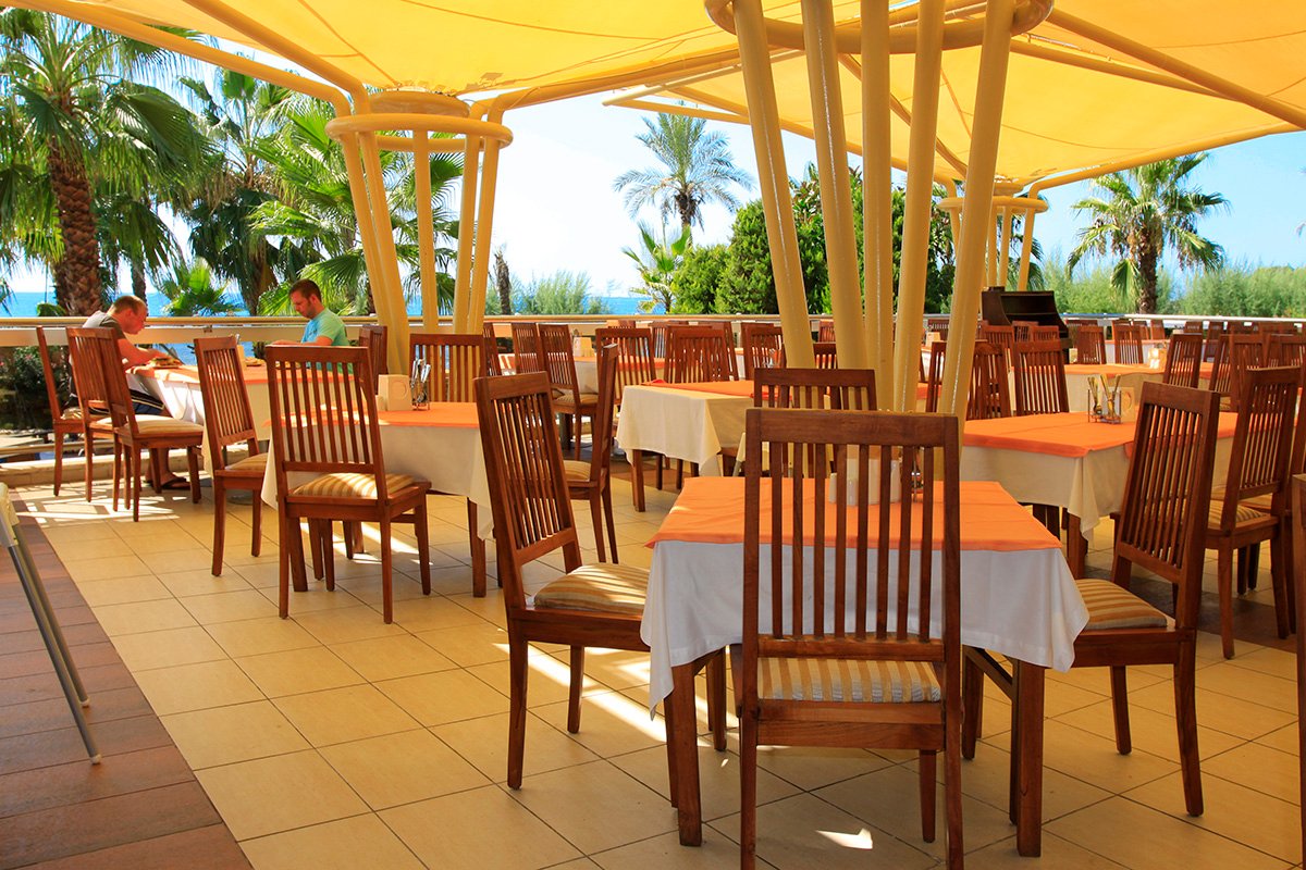 śniadanie (7.00-10.00), późne śniadanie (10.00-10.30), obiad (12.30-14.30), kolacja (18.30-21.00); przekąski w ciągu dnia, popołudniowa kawa, herbata i ciastko (16.30-17.00); nocne przekąski (23.30-24.00); napoje bezalkoholowe i lokalne napoje alkoholowe w wyznaczonych barach (10.00-1.00); raz na pobyt kolacja w restauracji à la carte (wymagana wcześniejsza rezerwacja); wymagane noszenie opasek all inclusive.