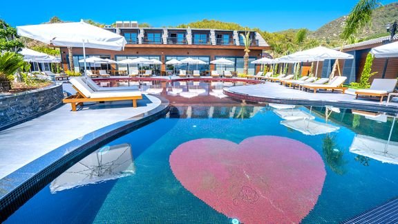Tuż przy plaży, spokojna okolica, piękny basen w kształcie serca… to tylko niektóre atuty tego hotelu, doskonałego na romantyczny urlop! Baw się i odpoczywaj ciesząc się tureckim słońcem i widokiem na morski bezkres. Wycisz się w komfortowych, dobrze wyposażonych pokojach i zarezerwuj czas na wizytę w centrum spa, a jeśli lubisz aktywnie spędzać czas weź udział w zajęciach jogi lub zadbaj o formę na siłowni.